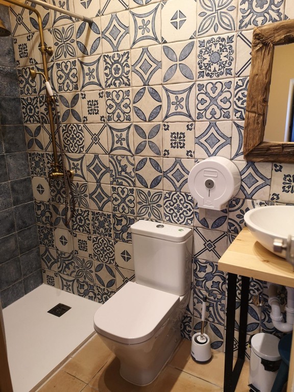 Cuenta con 357 m² en dos plantas: planta baja con apartamento independiente, habitación adaptada con baño, cocina-comedor, salón con chimenea, patio, porche, lavandería y jardín. Planta alta con 1 habitación triple y 3 dobles, todas con baño privado.
