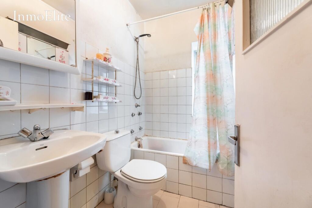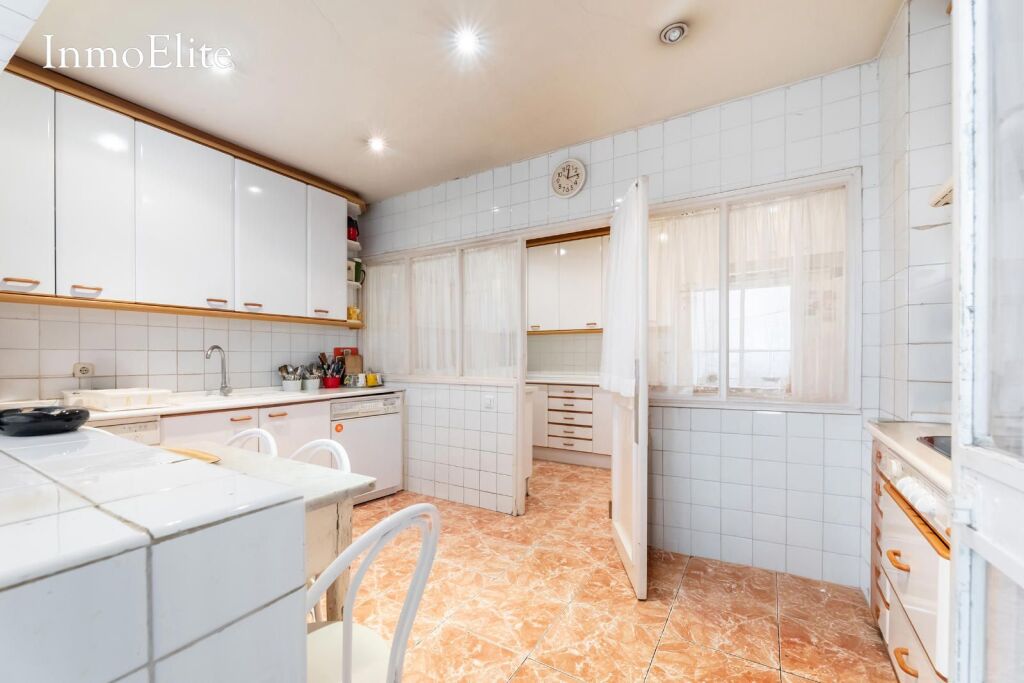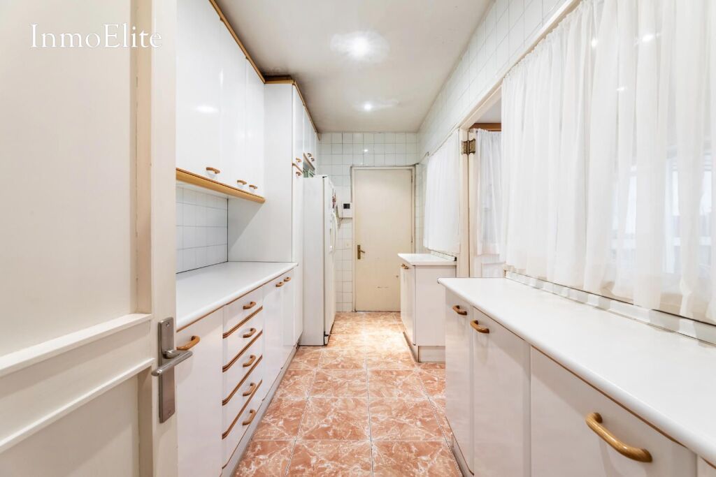 Desde la cocina se accede a una zona con despacho, dormitorio y cuarto de baño con bañera que da servicio a dicha habitación.