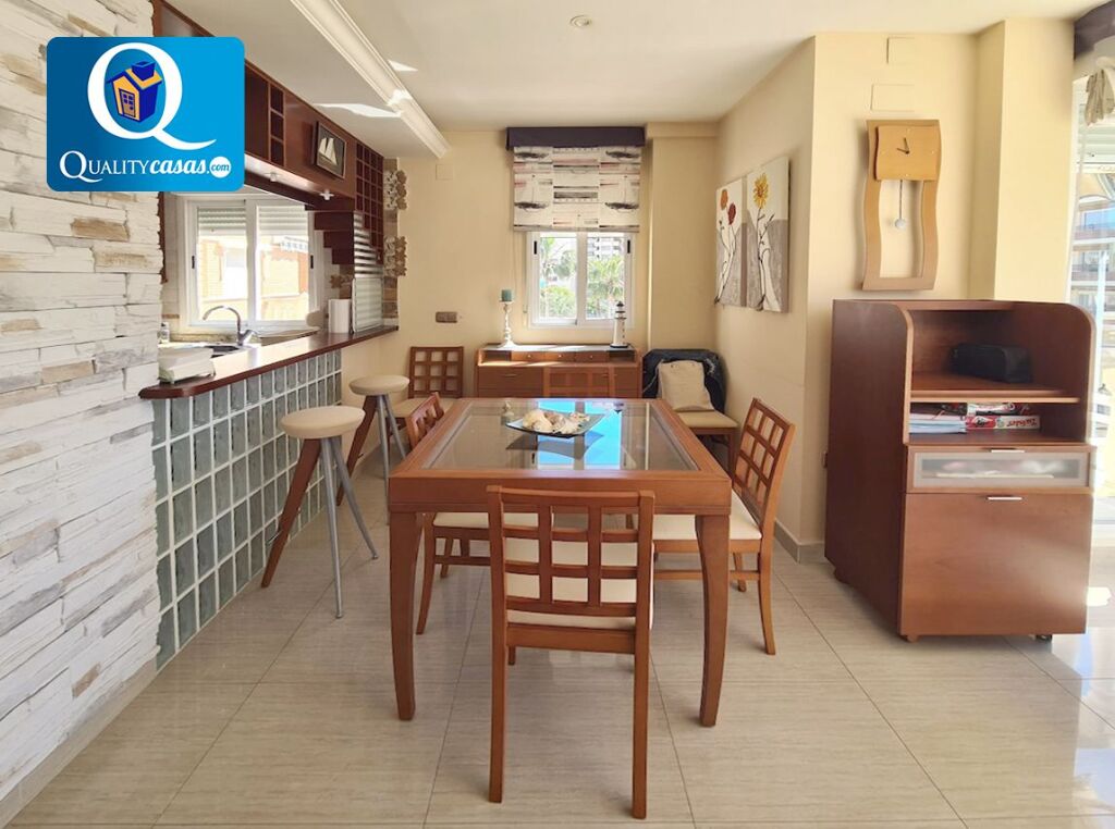 Referencia 58072R Un excelente piso en una de las mejores zonas de Playa Muchavista (El Campello). Situado muy cerca de la playa y con vistas a la avenida ajardinada y al mar, dispone de urbanización privada junto a avenida principal, disfruta de excelentes comunicaciones y se encuentra rodeado de todos los servicios y zonas comerciales. Se trata de una propiedad totalmente exterior, amplia y luminosa, con una excelente distribución y grandes posibilidades para dotarla de nuestro estilo personal. Con una construcción sólida y de calidad, la vivienda se ofrece semiamueblada, se encuentra en inmejorable estado y dispone de primeras calidades, contando con suelos en gres porcelánico, AA.CC centralizado con bomba de calor, techos en cámara de pladur con iluminación integrada, carpintería de roble y ventanas aluminio climalit, entre otras mejoras. El amplio y luminoso salón, muy bien comunicado, dispone de magnífica terraza con vistas a la avenida y al mar. La moderna cocina, con zona de office, se encuentra totalmente equipada, cuenta con todos los electrodomésticos y se integra en el salón, compartiendo su luminosidad. La vivienda cuenta con 2 dormitorios con armarios empotrados y 2 baños completos. La finca dispone de ascensor y la vivienda cuenta además con amplio garaje privado en el edificio. Dispone además de urbanización con piscinas comunitarias y zonas ajardinadas. Una magnífica vivienda a un paso del mar en excelente zona de Playa Muchavista, para quien sabe apreciar su calidad, exclusividad y todas las posibilidades que ofrece. Concierte ahora una visita y compruebe personalmente la oportunidad que supone la adquisición de esta propiedad. La presente publicación tiene carácter meramente informativo, orientativo y no vinculante, por lo que no supone información contractual alguna, siendo su uso estrictamente comercial. Este anuncio puede contener errores, se muestra a título informativo de la información recibida, sin ser responsable la inmobiliaria de dichos errores. Nota informativa conforme al Art. 20 TRLGDCU El precio de venta publicado no constituye una oferta vinculante y no incluye los gastos e impuestos derivados de la compraventa. La operación puede estar sujeta a ITP y/o IVA. Se estiman unos costes adicionales de Notaría, Registro de la Propiedad y Tasación. Honorarios inmobiliarios a cargo del vendedor.