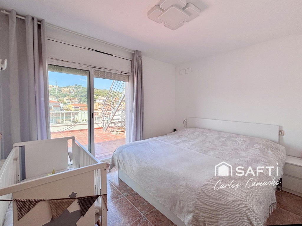 Segunda planta con 3 habitaciones, baño completo y terraza con vistas panorámicas a Calafell y la Costa Daurada.