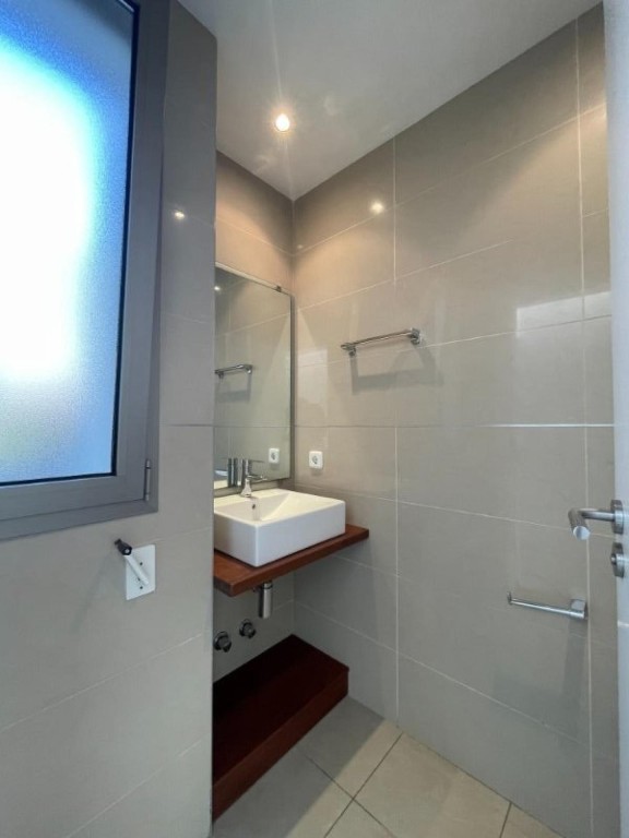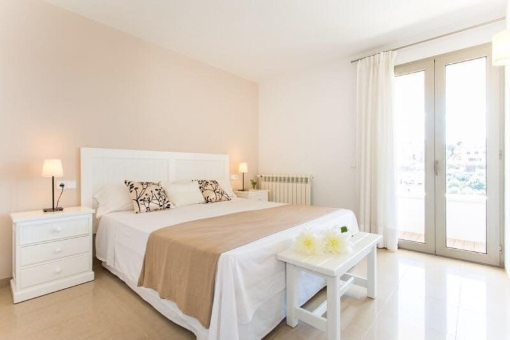 Se puede acceder al piso inferior tanto por el interior de la vivienda como por el exterior a través de una bonita escalera de hierro corten, en esta planta encontramos los dormitorios, un total de tres, así como dos baños, uno de ellos en suite, en la cara norte dispone de un bonito jardín interior y en la sur da salida a la imponente piscina infinity que se complementa con un bonito solarium de madera. La zona de piscina equipa una habitación para guardar enseres y también un baño.