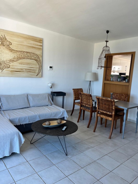 El interior ofrece una cocina semiabierta al salón, moderna y práctica, equipada con vitrocerámica y horno, que se integra con un espacio de estar cómodo y acogedor. La propiedad dispone de dos baños, armarios empotrados, aire acondicionado con bomba de calor y agua caliente mediante termo eléctrico, garantizando confort durante todo el año.