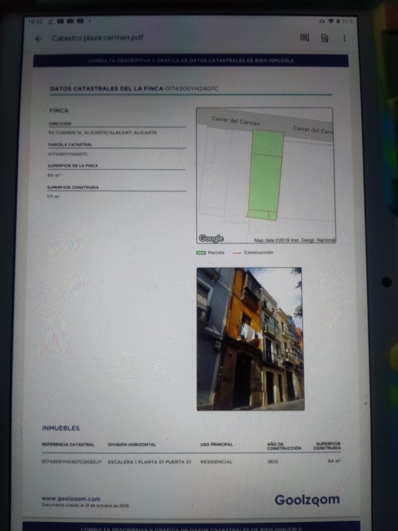 En edificio que consta de planta baja, 2 plantas y terraza. Sólo 1 vecino. No hay comunidad constituida.En centro histórico. A 5 minutos andando de la playa del postiguet y puerto deportivo. A 3 minutos parada de TRAM, autobús, taxi. Unos 45m útiles y casi 4 metros de altura. Necesita reformas. La instalación eléctrica y fontanería están reformadas hace unos 8 años,. Durante los últimos 30 años se han ido realizando mantenimientos y rehabilitaciones parciales sobre todo en elementos básicos . Estructura en madera que podría quedar a viga vista. La carpintería de aluminio es reciente en algunas estancias. Salida de humos en chimenea de tejado. El baño se reformó completamente hace 8 años. La cocina es funcional, totalmente para tirar y reformar. El patio interior necesita reformas de azulejos. Actualmente está separado en 3 habitaciones modulares, una hecha con pladur y las otras 2 con separadores en madera conglomerada(son provisionales y funcionales) se desmontan rápidamente y queda diafano.Está para reformar de pintura. Se puede entregar totalmente diáfano. Tiene terraza superior compartida , con vistas espectaculares al castillo y barrio santa cruz. Envío fotos y vídeo. No idiomas, solo Español y posibilidad de traductor en ruso, en otro caso traer traductor. Hay numerosas ayudas a la reforma y rehabilitación por parte de Ayuntamiento, Autonómicas y Estatales, las reformas pueden estar subvencionadas en porcentajes muy altos casi gratis te podría salir una reforma integral aprovechando las subvenciones. IMPORTANTE saber que está A REFORMAR envío fotos y videos y cualquier otra información relevante. Contacto preferible por wassp. Visitas solo un día a la semana y concertar con varios días de antelación. También puede videollamada avisando con antelación . Mejor preguntar dudas antes de visitar. Gracias.