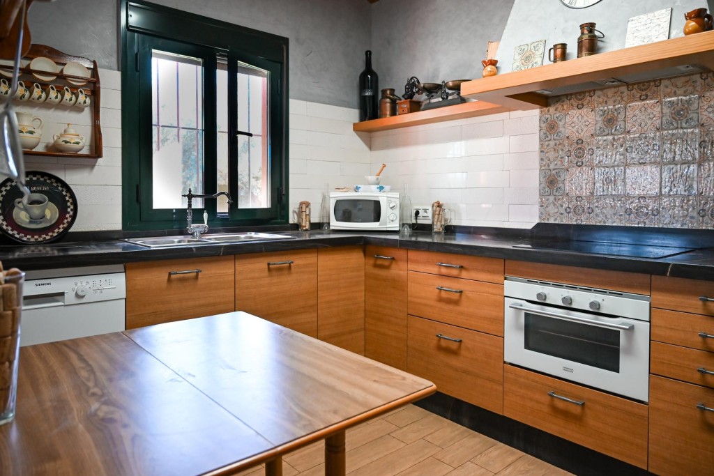 En la planta baja, la casa consta de: una cocina luminosa y funcional, un amplio salón, un lavadero separado, un aseo de invitados, un baño completo y un dormitorio con literas, que pueden acomodar a un mínimo de 5 personas.