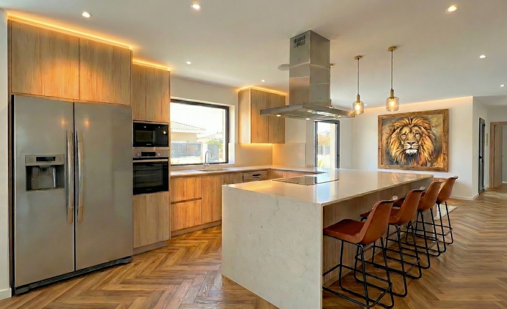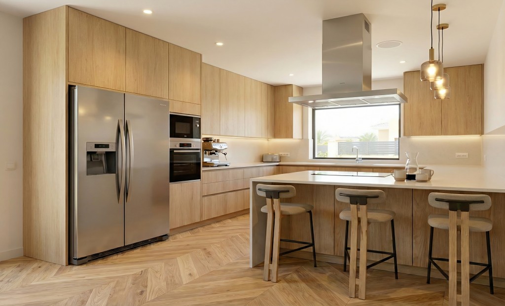 El amplio y luminoso salón-comedor, con grandes ventanales, es perfecto para disfrutar de la luz natural y del clima mediterráneo. La cocina, diseñada para el día a día, se convierte en el corazón del hogar, ideal para compartir momentos en familia. Además, cuenta con un jardín privado y una refrescante piscina, así como terrazas orientadas al sur que invitan a relajarse y disfrutar del sol.