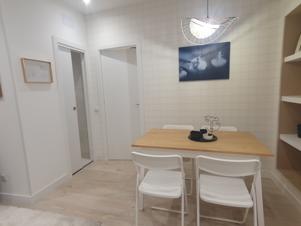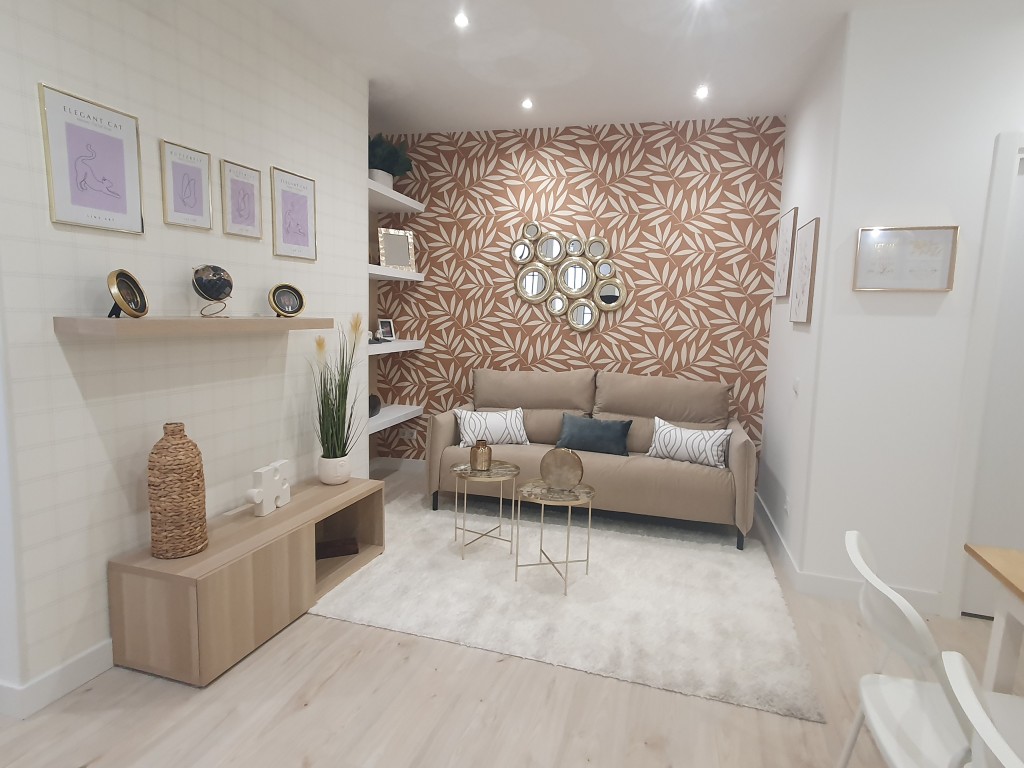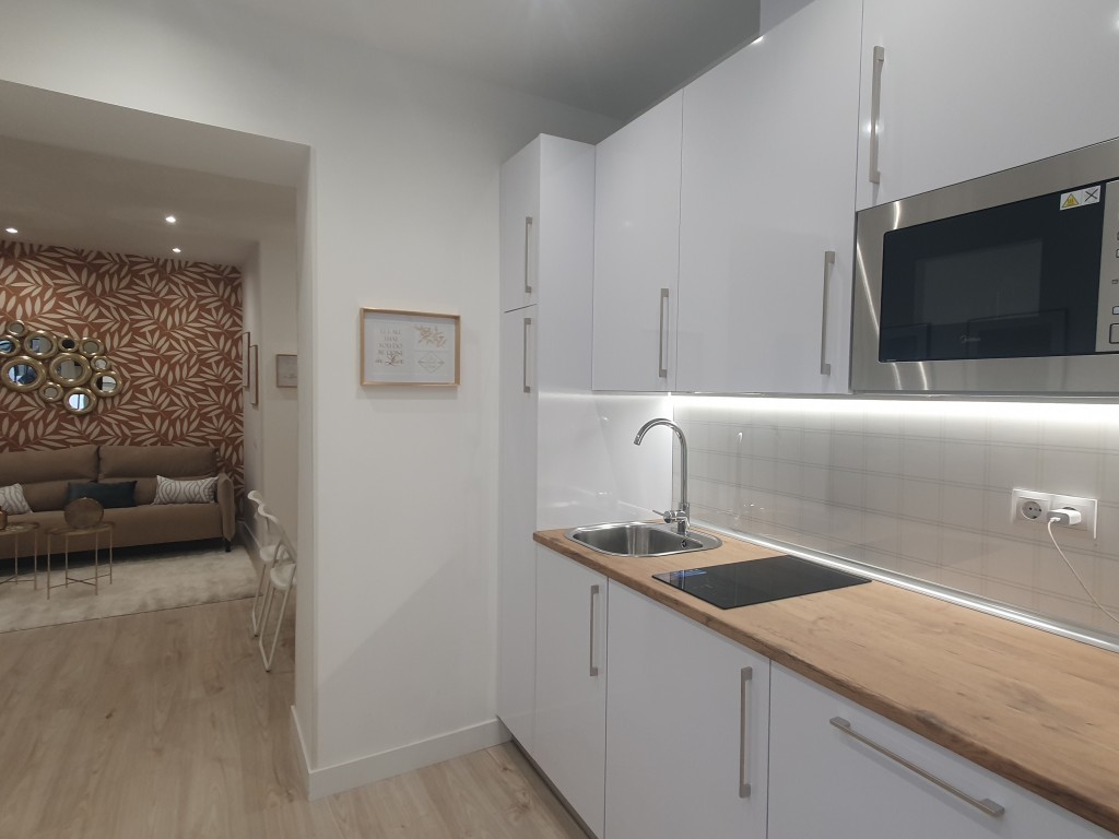 El salón con cocina americana equipada es un espacio amplio y luminoso. Además, la vivienda se entrega amueblada y decorada, lo que la hace aún más atractiva para aquellos que buscan mudarse sin preocupaciones, o quienes quieren a modo de inversión.