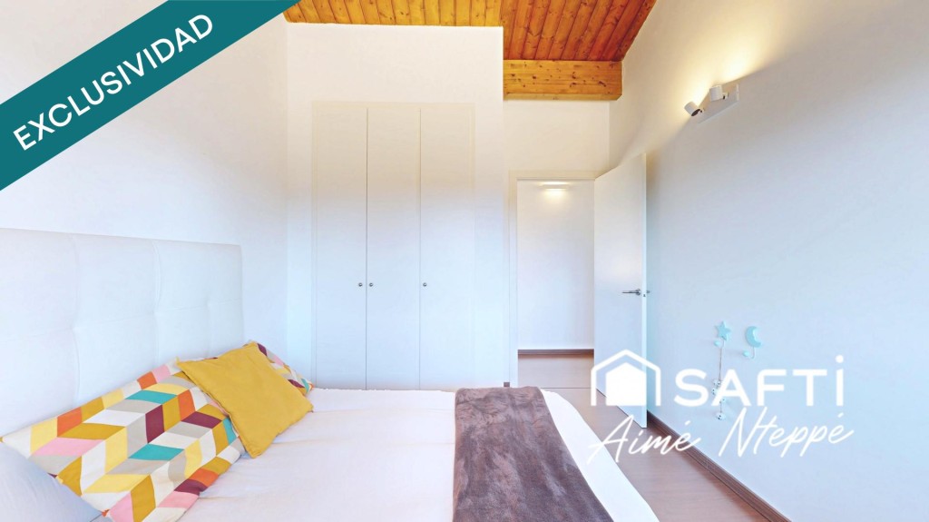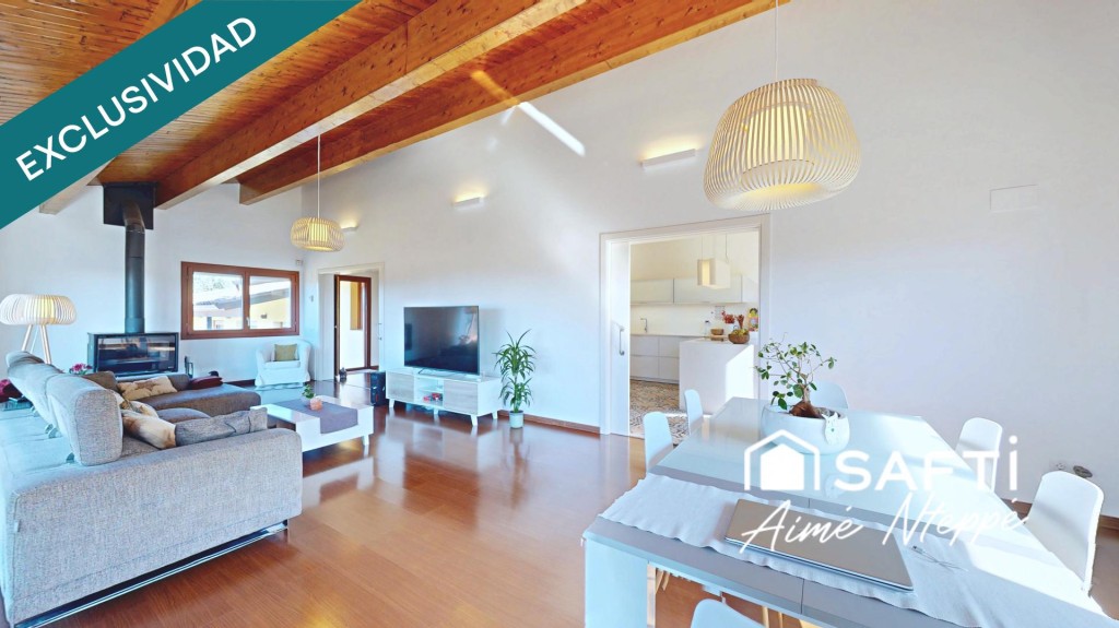De alta eficiencia energética, la vivienda dispone de sistema de aerotermia, lo que garantiza un bajo consumo, además de una chimenea para darle el toque rústico con su bonito techo de madera. Todos los espacios de la casa inundados de luz natural, crean una atmósfera de calma y serenidad a cada regreso a su hogar.
