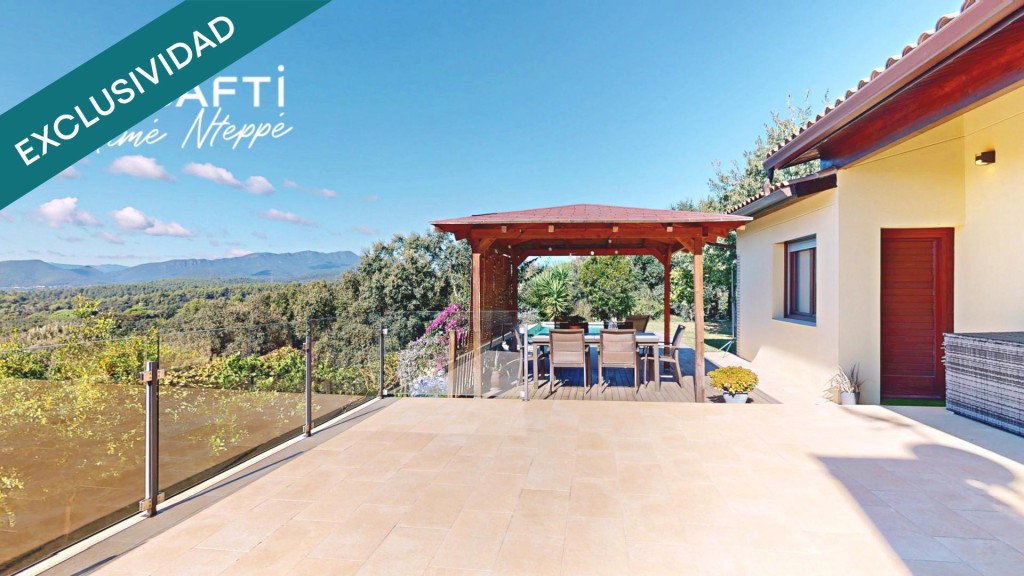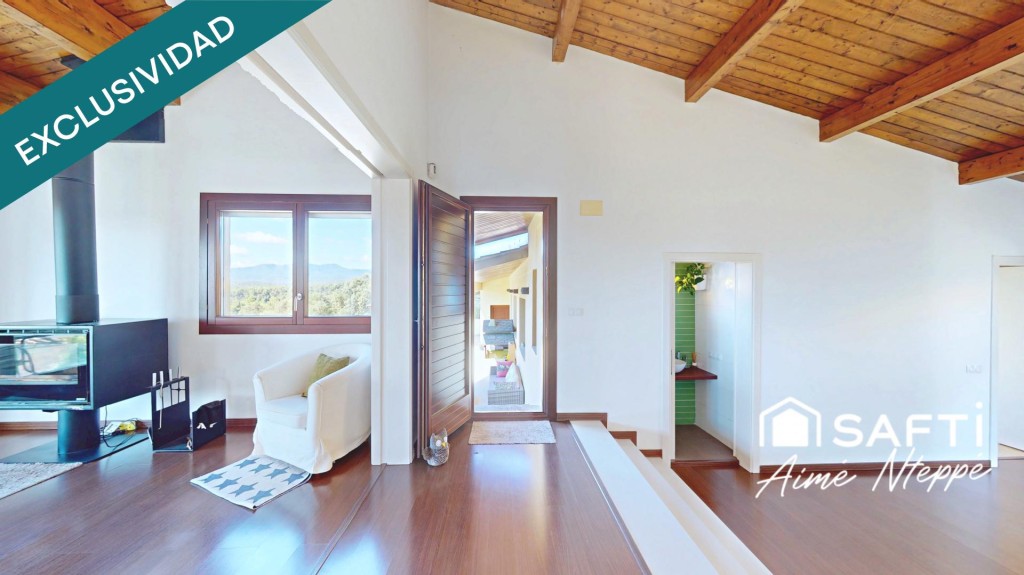 La distribución de una sola planta garantiza una circulación fácil y para todos. Dispone la propiedad de cuatro dormitorios con armarios empotrados incluyendo una suite principal, a demás de una quinta estancia actualmente utilizado como despacho. Dos baños completos y un aseo de cortesía que separa zona privada del área de invitados. Elegancia, confort y tranquilidad caracterizan perfectamente esta propiedad. La calidad de su arquitectura y sus acabados permiten entrar a vivir sin necesidad de reforma. Todo un estilo contemporáneo que conserva una esencia clásica y practica. En el exterior, el entorno es simplemente privilegiado: Piscina Privada, zona de barbacoa, espacio Chil-out y Vista Panorámicas. Contemplar las puestas de sol sobre el bosque y las montañas es un ritual diario.