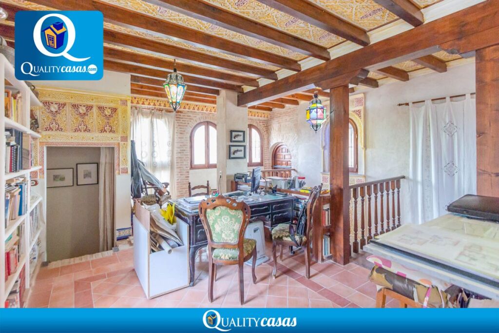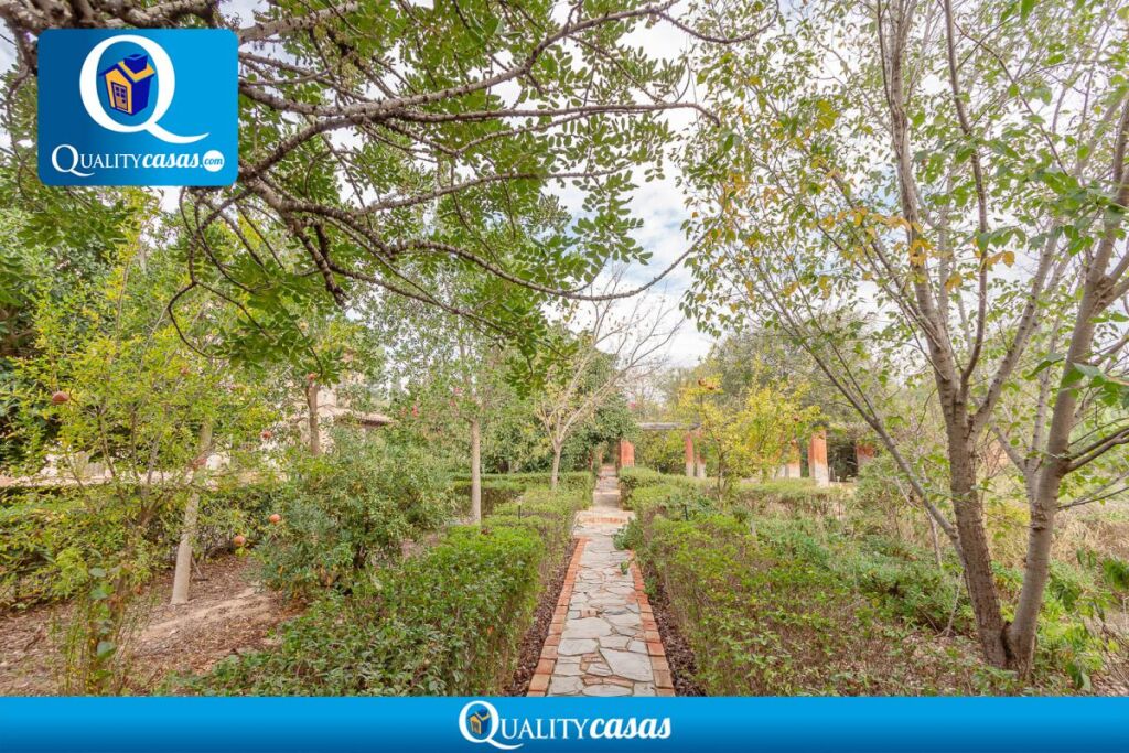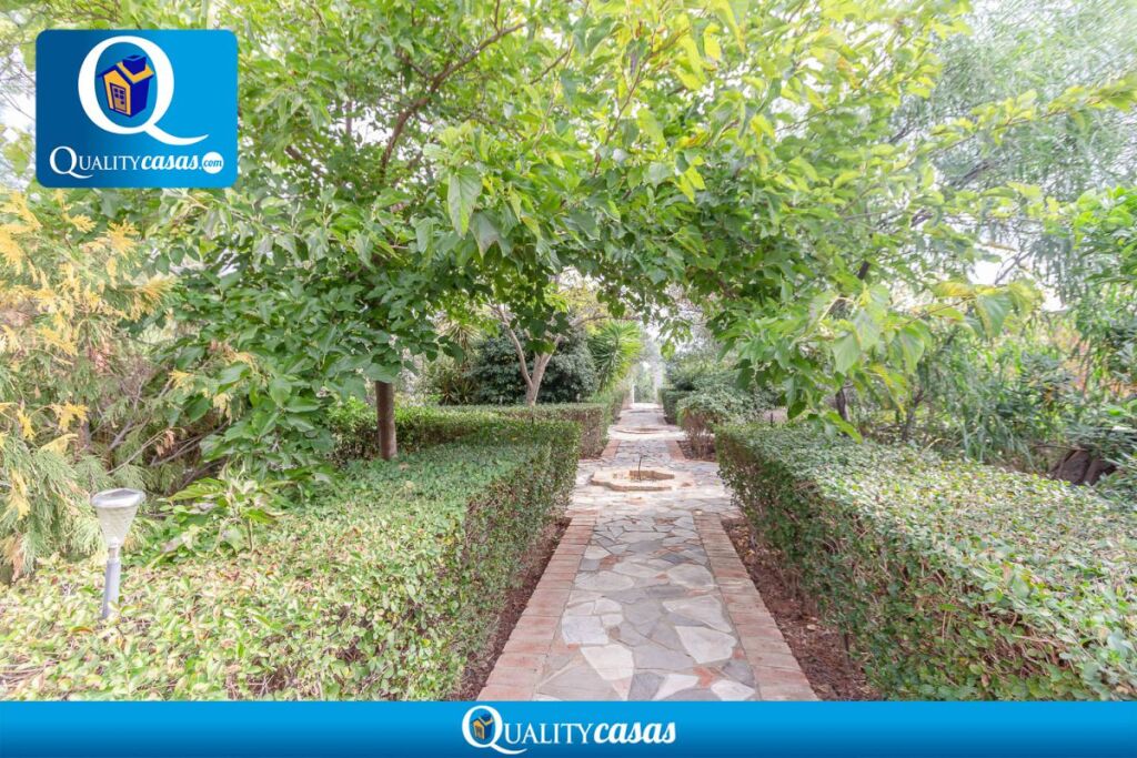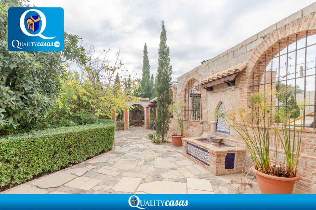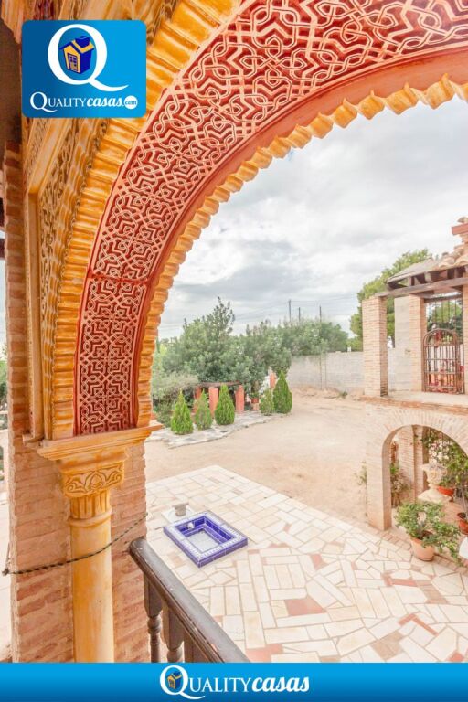 ---------- Dispone de completa cocina independiente con office muy luminosa, con gran amplitud y perfectamente comunicada ---------------- Consta de 4 dormitorios amplios (3 de ellos con armarios empotrados) y 3 baños completos (2 de ellos en suite) -------------Gran salón comedor principal de 40 m2 con chimenea, muy luminoso, comunicado con el porche terraza de 50 m2 de entrada a la vivienda --------- Cuenta además con un segundo salón para reuniones en planta principal y magnífico salón biblioteca en la primera planta -------------- El fantástico jardín, con riego automático, está perfectamente perimetrado: una gran extensión de arbolado y plantas florales totalmente acondicionada, con arcadas y zonas de descanso en ladrillo cerámico y piedra, pasillos entre setos, etc, con maravilloso estilo árabe ------- Cuenta además con zona de aparcamiento para varios vehículos ----
