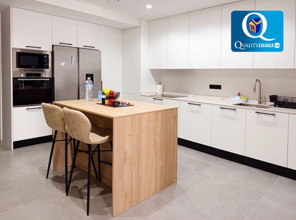 El salón, muy bien comunicado, cuenta con moderna cocina office integrada, completamente equipada y con todos los electrodomésticos. La vivienda cuenta con 3 dormitorios (el principal con armarios empotrados) y 2 baños completos.