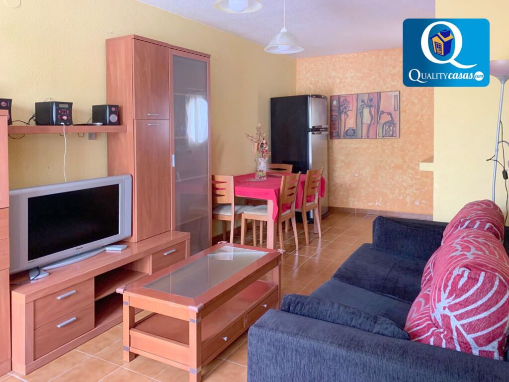El porche terraza de entrada a la vivienda da paso al luminoso salón que cuenta con cocina integrada. La vivienda cuenta con 3 dormitorios exteriores con armarios empotrados y 2 baños completos.