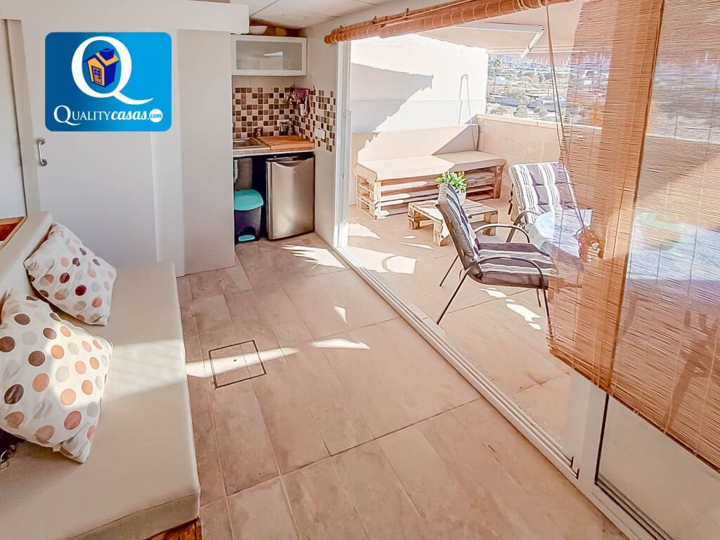 El luminoso salón, muy bien comunicado y con dos ambientes, dispone de terraza con vistas despejadas y a la montaña. La cocina independiente, con zona de office, se encuentra totalmente equipada, cuenta con todos los electrodomésticos y dispone también de galería acristalada. La vivienda cuenta con 2 habitaciones y 2 baños completos, disfrutando el dormitorio principal de baño en suite.