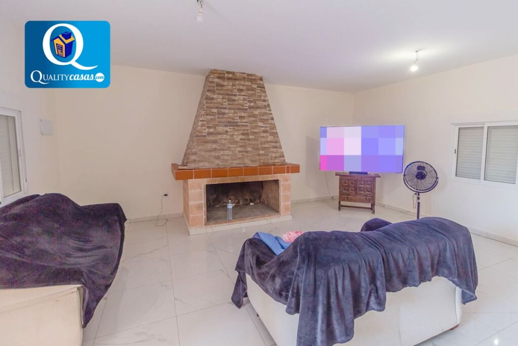 El amplio salón principal, con acceso desde el porche terraza, cuenta con dos ambientes y magnífica chimenea, disponiendo de zona para la instalación de la cocina, que cuenta ya con los electrodomésticos. La propiedad se compone de un total de 6 habitaciones (la principal con cuarto vestidor) y 2 baños completos, contando además con 2 zonas de terraza y trastero en construcción independiente.