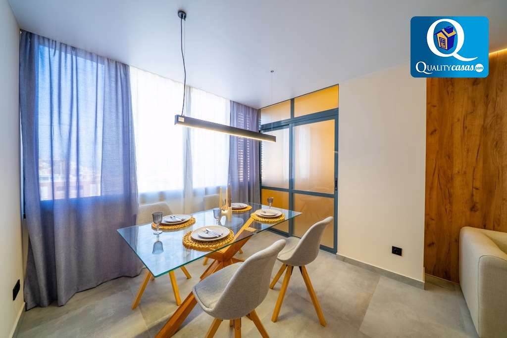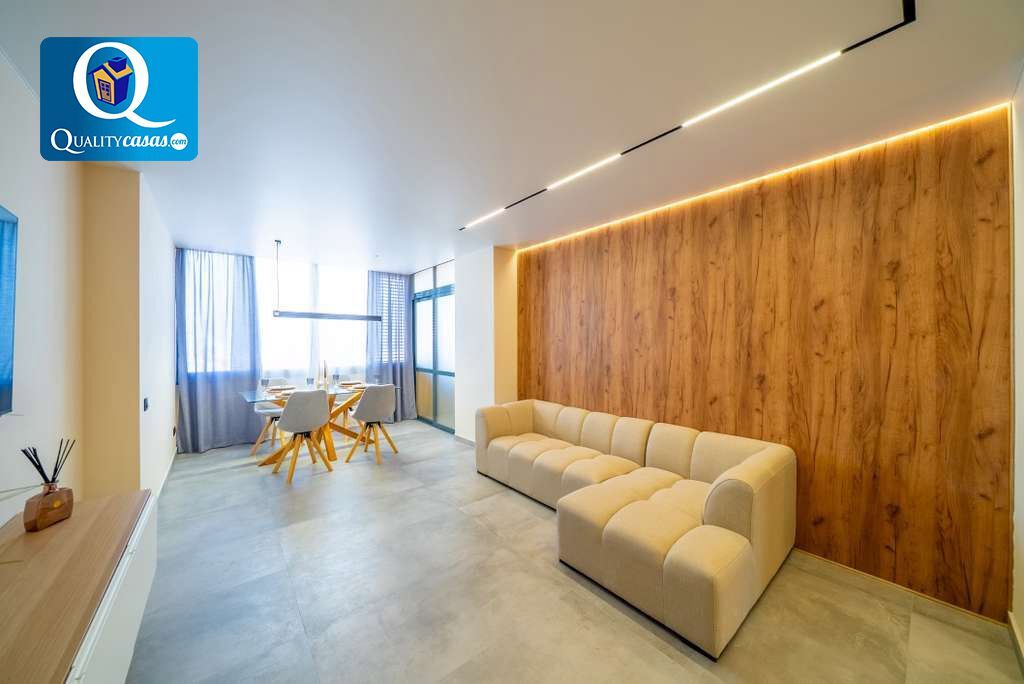 Se trata de una propiedad exterior, muy amplia y con una excelente distribución. Con una construcción moderna, sólida y de calidad, la vivienda se ofrece amueblada, se encuentra en inmejorable estado (a estrenar tras magnífica reforma integral con primeras calidades y diseño actual), disponiendo de AA.CC centralizado, calefacción por radiadores de gas, carpintería lacada en blanco, suelos en gres porcelánico efecto madera y ventanas aluminio climalit, entre otras mejoras.