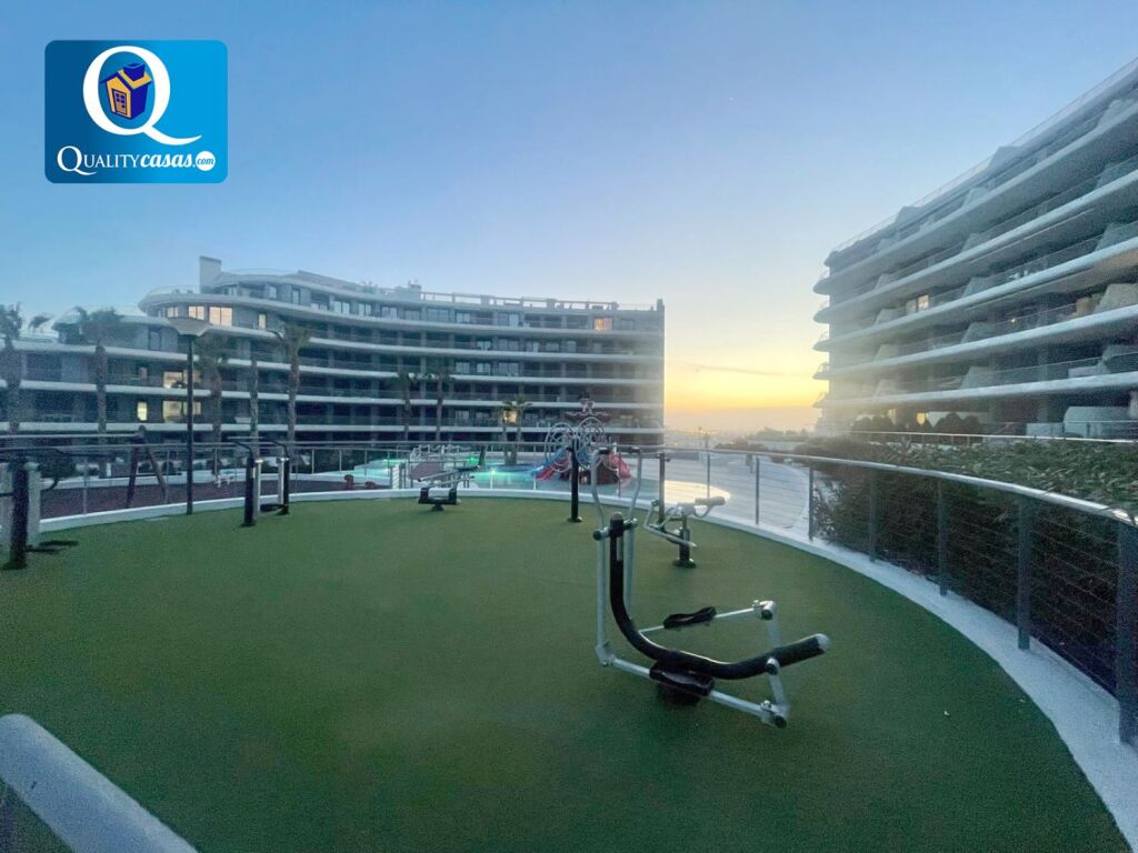 El luminoso se comunica con la magnífica terraza de la vivienda, totalmente acondicionada y con vistas a zonas ajardinadas y al mar. La moderna cocina office, integrada en el salón, se encuentra totalmente equipada, cuenta con todos los electrodomésticos y dispone también de galería acristalada. La vivienda cuenta con 2 dormitorios con armarios empotrados y 2 baños completos.