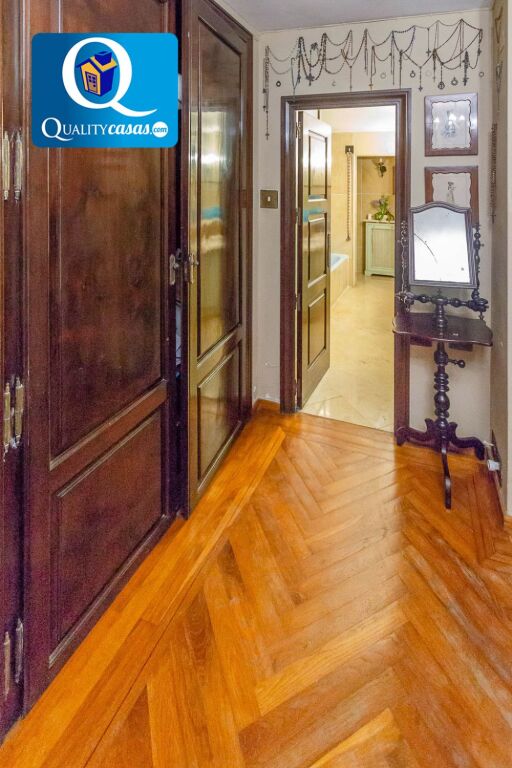 Con una construcción sólida y de calidad, la vivienda se encuentra en muy buen estado y dispone de suelos en parquet, techos de altura con vigas de madera y escayola, y carpintería de nogal macizo en puertas y ventanas, entre otras altas calidades.