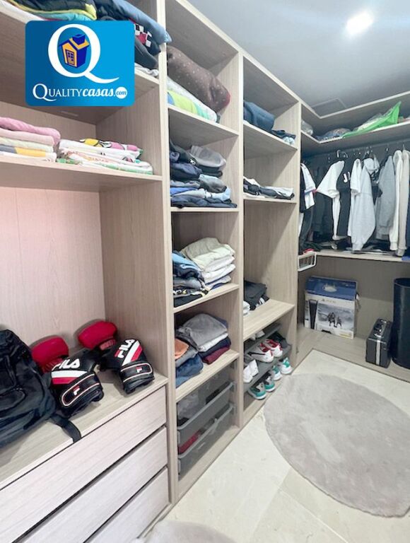 La vivienda nos recibe con un luminoso hall distribuidor con techos de doble altura y escalera central. El magnífico y espacioso salón principal disfruta de dos orientaciones y cuenta con moderna cocina con office e isla central, con excelente diseño y equipada con electrodomésticos de alta gama. Dispone de magnífico patio central exterior de 150 m2 con zona de estar y fantástica piscina climatizada. La vivienda cuenta con un total de 6 dormitorios dobles (4 de ellos con armarios empotrados y terraza exterior), 3 baños completos (el principal en suite) y 1 aseo. Cuenta con zona de sauna y gimnasio y cuarto de lavado y plancha, así como de garaje privado y dos zonas de trastero.
