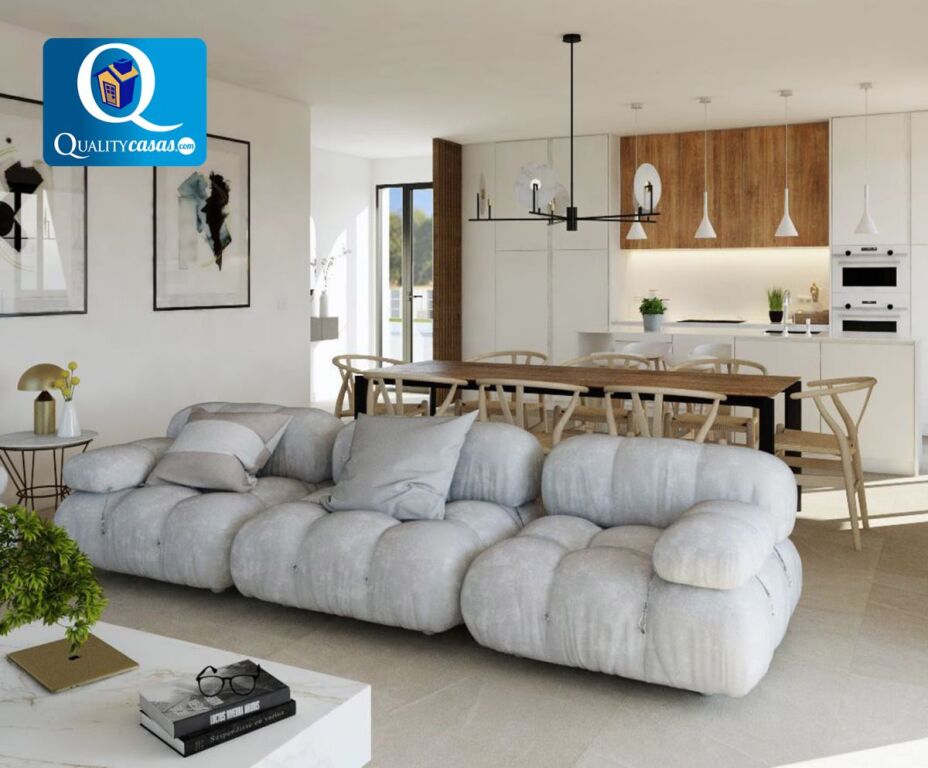 Con moderno diseño y magnífica distribución en planta única, la conexión de los espacios de la vivienda, con fluidez y continuidad, inspiran tranquilidad y calidez en el hogar. Dispone de parcela totalmente acondicionada como jardín privado, que incluye dos plazas de garaje y cuenta con magnífica piscina y excelentes vistas, en un rincón ideal para disfrutar de la climatología única de esta zona del Mediterráneo.
