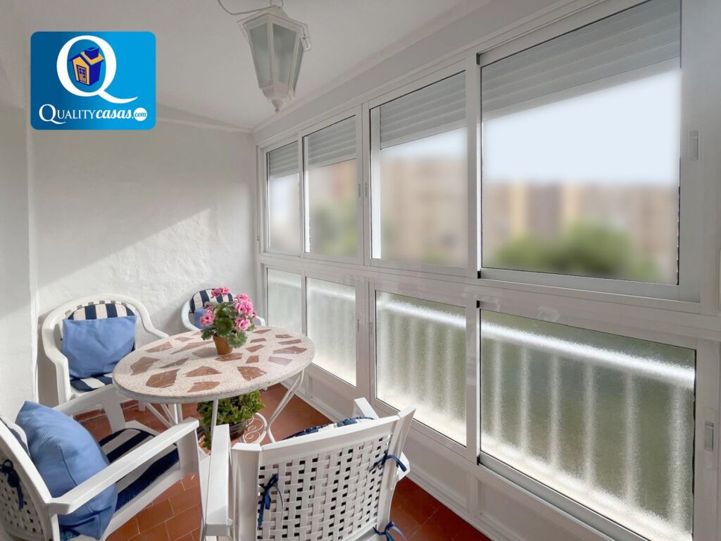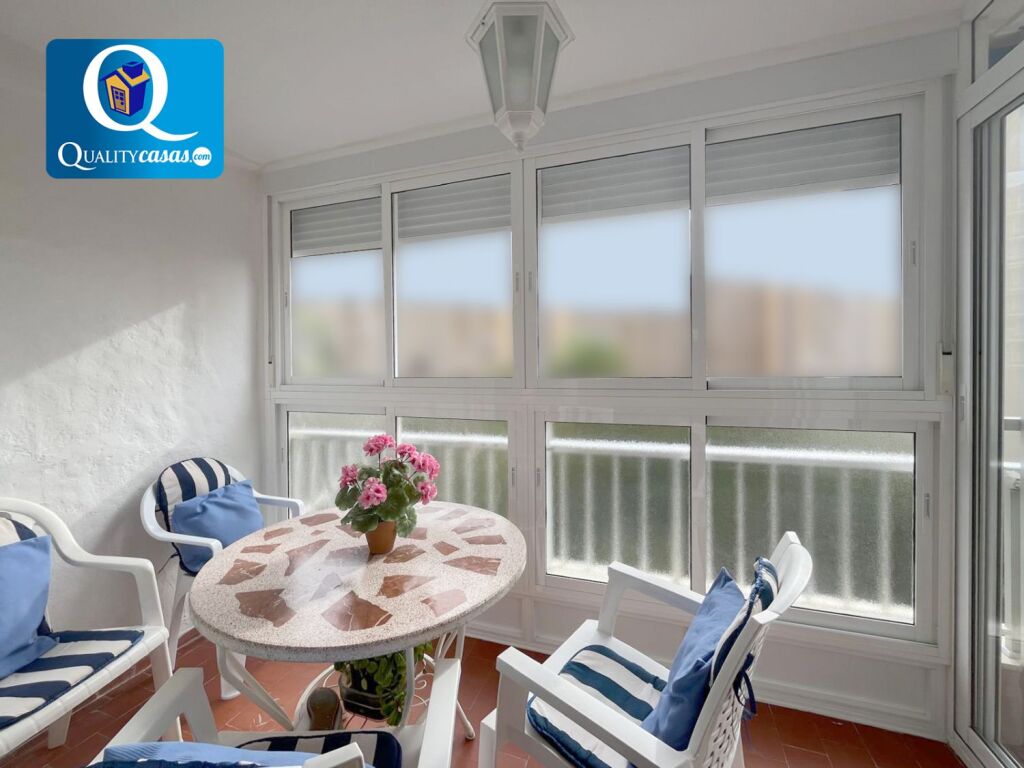 El amplio y luminoso salón, muy bien comunicado, dispone de terraza acristalada con vistas despejadas a la avenida, comunicada con la amplia terraza exterior de la vivienda. La cocina independiente, con vistas exteriores y zona de office, se encuentra totalmente equipada y cuenta con todos los electrodomésticos. La vivienda cuenta con 3 dormitorios con armarios empotrados (el principal con acceso a la terraza) y 2 baños completos.