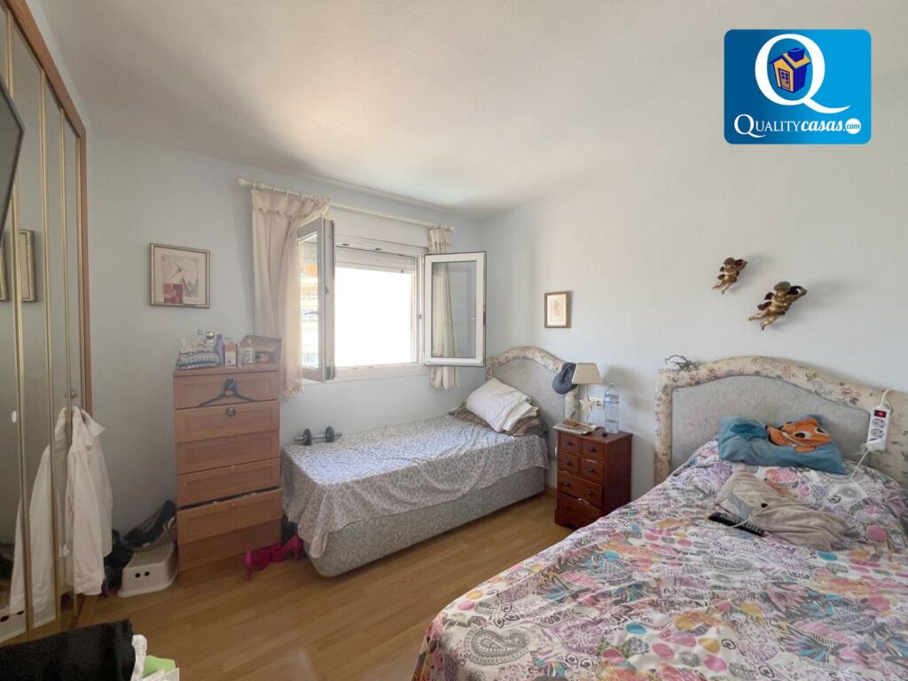 El espacioso y luminoso salón, muy bien comunicado, cuenta con dos ambientes y amplios ventanales con excelentes vistas al mar. La cocina independiente, con vistas exteriores y zona de office, se encuentra totalmente equipada y dispone también de galería. La vivienda cuenta con 3 dormitorios exteriores con armarios empotrados (5 en toda la vivienda) y 2 baños completos.