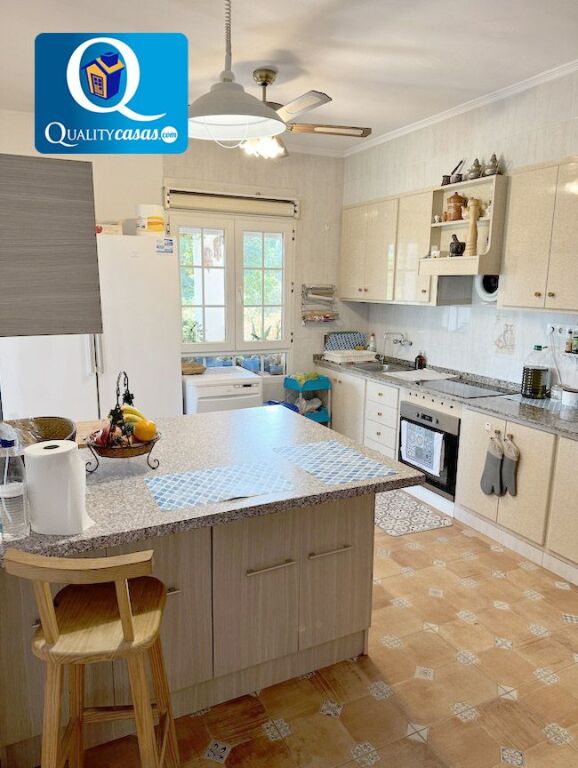 Con una construcción sólida y de calidad, se encuentra en magnífico estado y dispone de óptimas calidades, contando con suelos en tarima flotante, terrazo, cerámica y gres, techos de escayola, ventiladores de techo, mosquiteras, rejas, toldos, carpintería de roble lacado, AA.CC por Split con bomba de calor y ventanas aluminio climalit, entre otras mejoras.