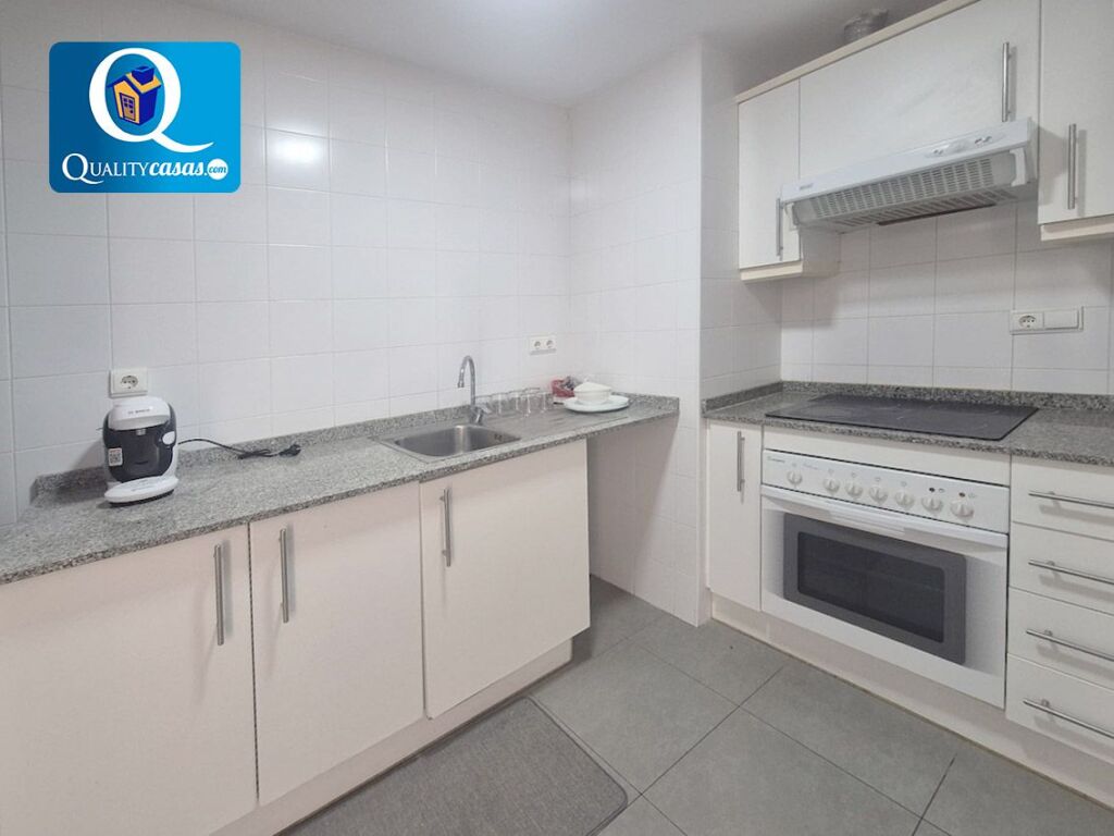 El luminoso salón, muy bien comunicado, dispone de magnífica terraza con vistas a la urbanización y a la montaña. La moderna cocina independiente, con zona de office, se encuentra totalmente equipada, cuenta con todos los electrodomésticos y dispone también de galería acristalada. La vivienda cuenta con 2 dormitorios (el principal con armarios empotrados y acceso a la terraza) y 2 baños completos.