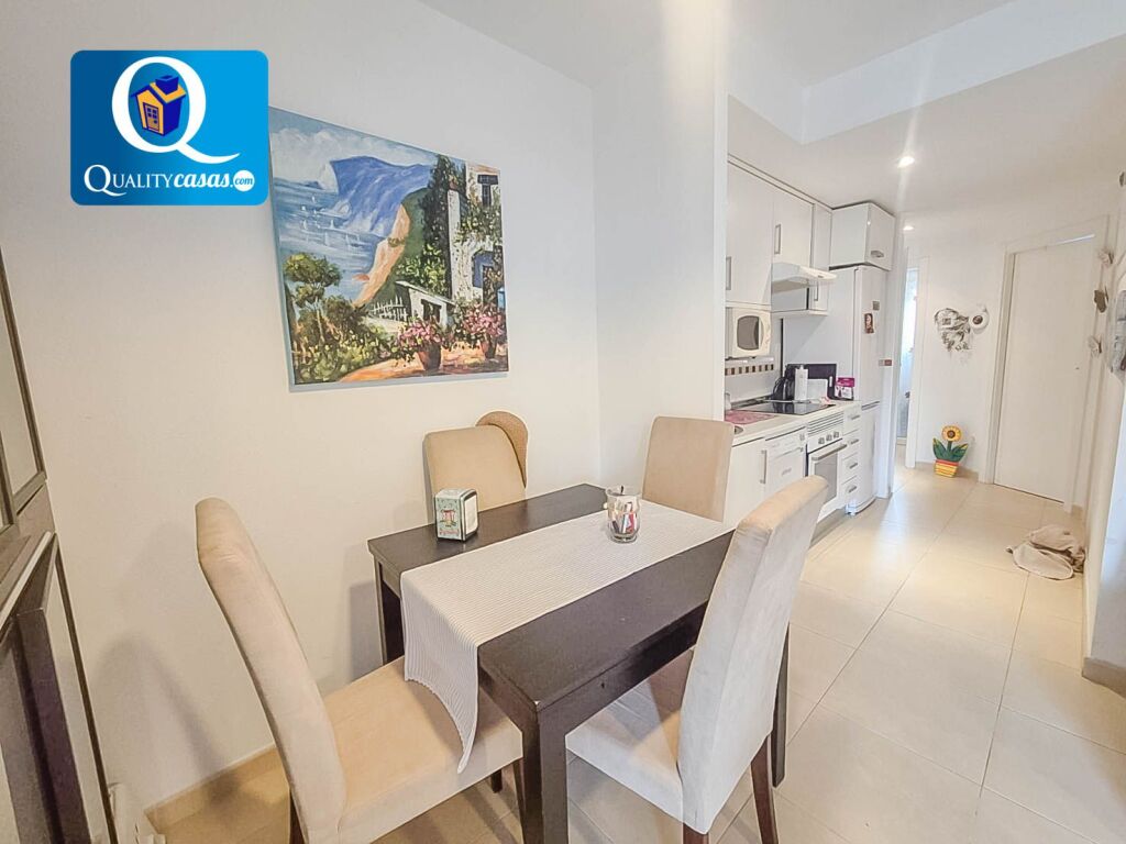 El luminoso salón, muy bien comunicado, dispone de dos orientaciones y cuenta con magnífica terraza con vistas despejadas y de montaña. La cocina office se encuentra totalmente equipada, cuenta con todos los electrodomésticos y se integra en el salón, compartiendo su luminosidad. La vivienda cuenta con 2 dormitorios y 1 baño completo.