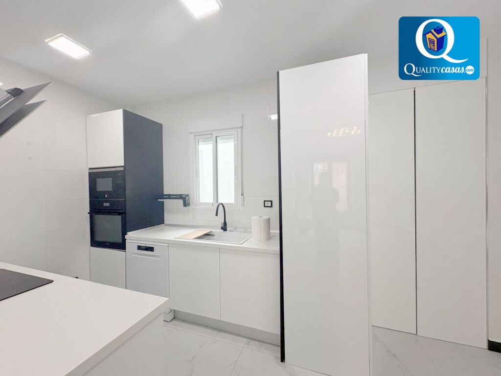 Se trata de una propiedad exterior, acogedora y luminosa, con una excelente distribución y grandes posibilidades. Con una construcción sólida y de calidad, la vivienda se ofrece semiamueblada y se encuentra en impecable estado tras magnífica reforma integral (a estrenar) con primeras calidades. Dispone de suelos en gres porcelánico, paredes en pintura lisa, techos en cámara de pladur con iluminación integrada, AA.CC con 3 splits, calefacción por suelo radiante, carpintería lacada en blanco y ventanas aluminio climalit, entre otras mejoras.