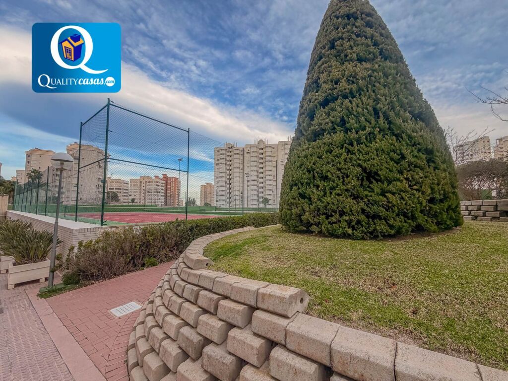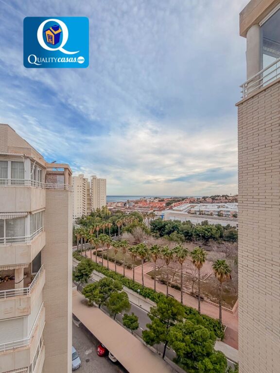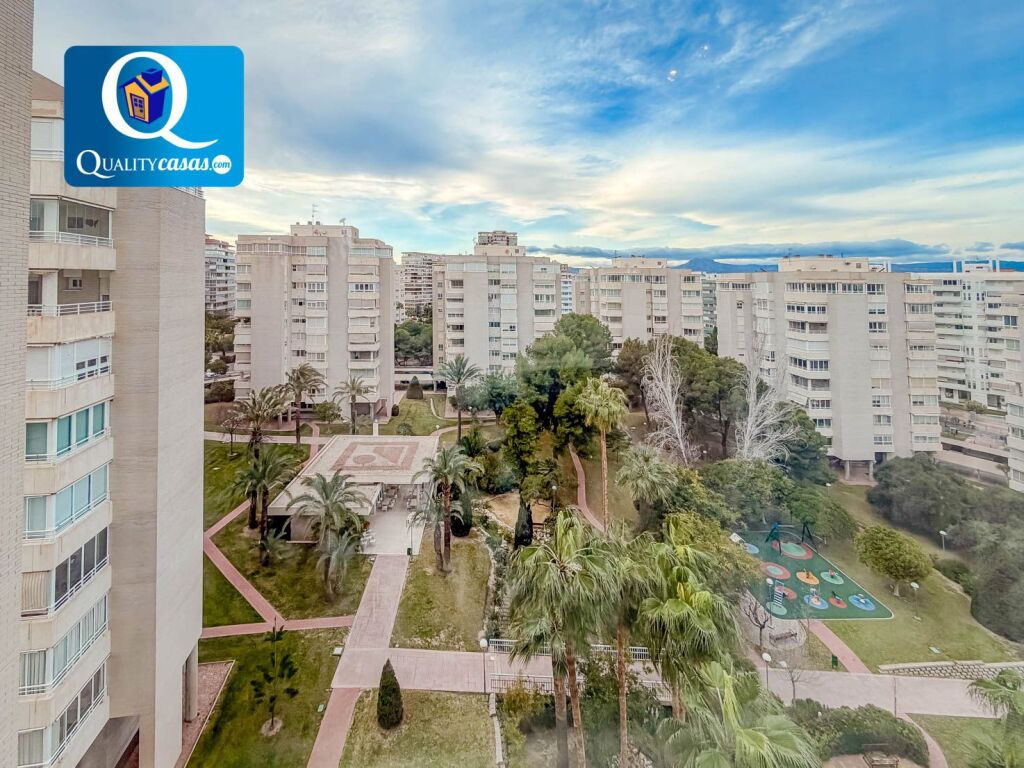 El hall nos recibe dando paso al amplio y luminoso salón con dos orientaciones y dos ambientes, cuya magnífica terraza acristalada nos ofrece vistas despejadas a las avenidas ajardinadas, el mar y la montaña. La cocina independiente, con zona de office, se encuentra equipada y dispone de amplio cuarto galería de lavado y plancha. La vivienda cuenta con 3 habitaciones exteriores con armarios empotrados (4 en toda la vivienda) y 2 baños completos, disfrutando el dormitorio principal de baño en suite.