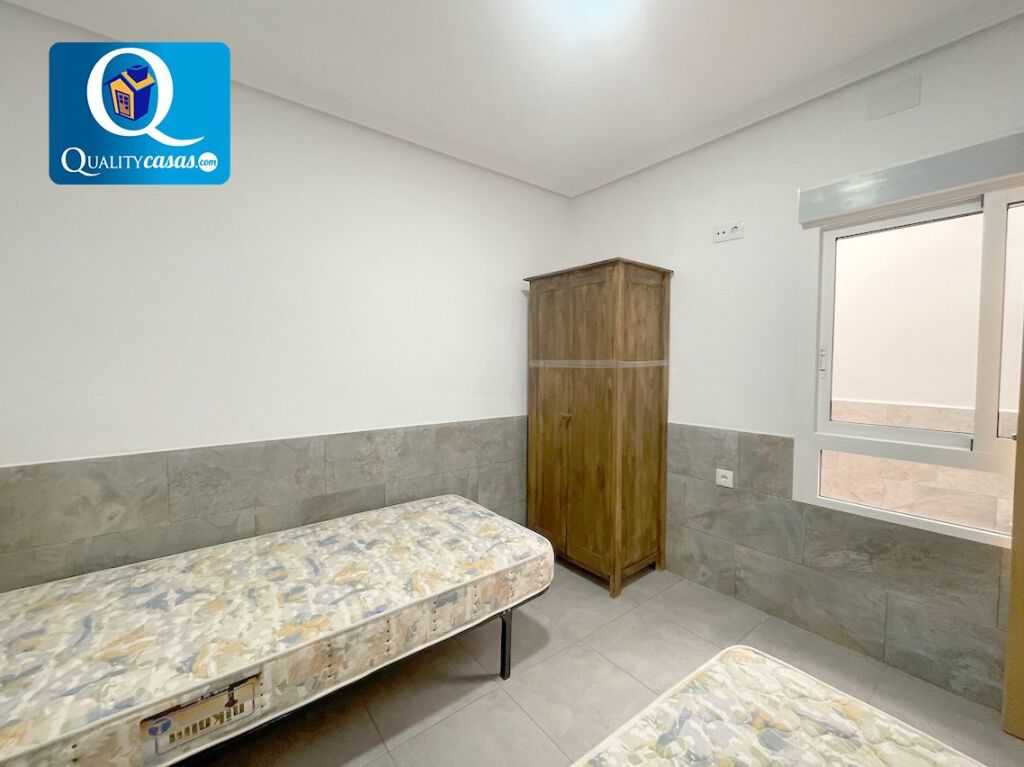 El amplio y luminoso salón, con vistas al paseo, dispone de cocina office integrada, completamente equipada y con electrodomésticos. La vivienda cuenta con 2 dormitorios y 1 baño completo, disponiendo también de patio interior.