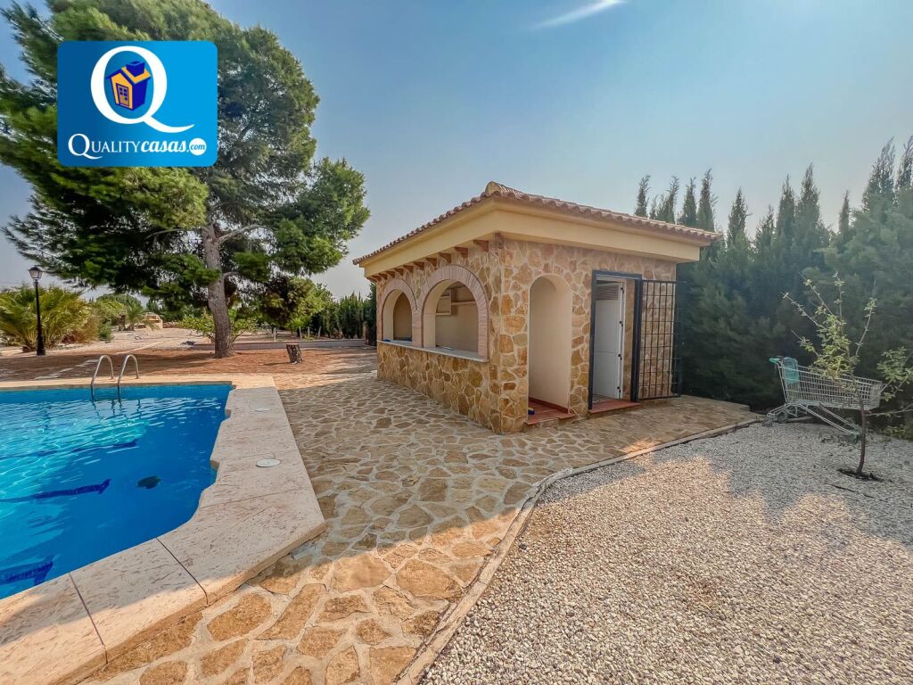 Este maravilloso chalet se encuentra en tranquila y bien comunicada zona residencial de Aspe (Alicante). Muy bien localizado y cerca del municipio, dispone de amplia parcela privada de 14.000 m2, totalmente ajardinada y magníficamente acondicionada.