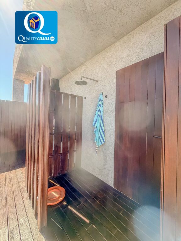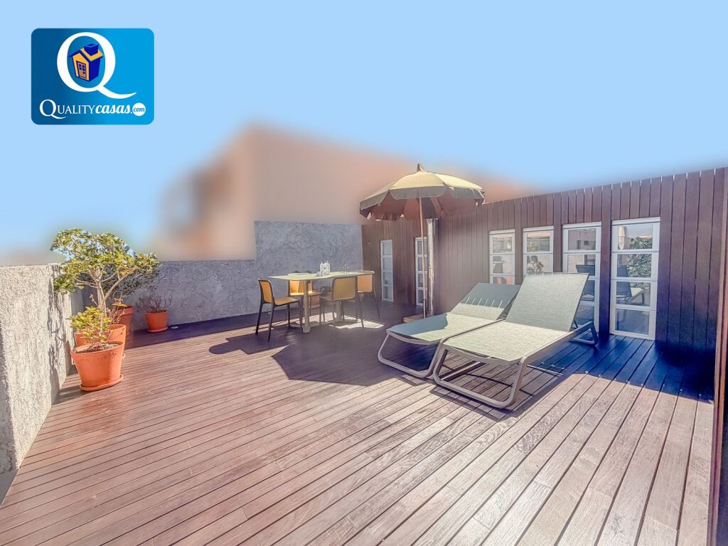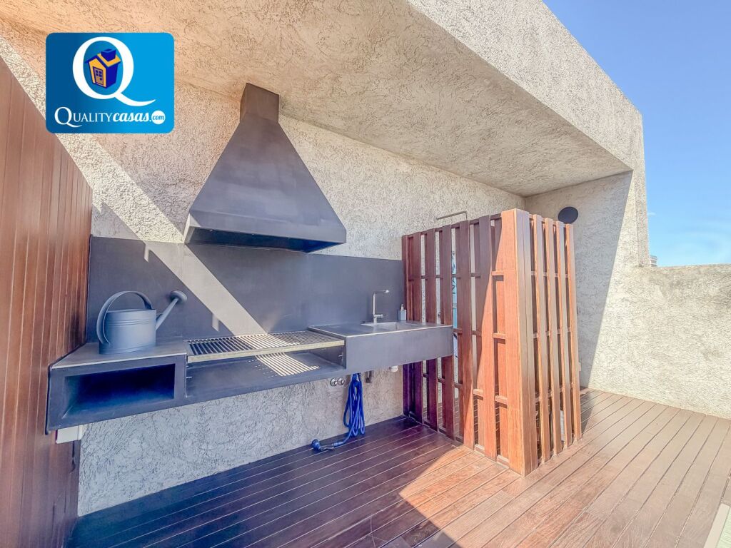 La magnífica terraza de planta superior, con acceso desde la terraza de la planta principal y con tres orientaciones, cuenta con total privacidad y dispone de barbacoa, zona de comedor, suelos de tarima natural, ducha privada y zona de estar cubierta. Disfruta de excelentes vistas y es ideal como solárium.