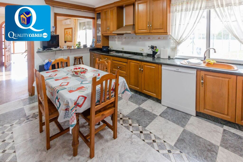 --------------------Dispone de completa cocina independiente con office muy luminosa, con gran amplitud y perfectamente comunicada -------------------------Consta de 6 dormitorios amplios (3 de ellos con armarios empotrados), 3 baños completos (uno en suite) y 1 aseo-------------Gran salón comedor de 40 m2 con chimenea, muy luminoso, comunicado con el impresionante porche acristalado y la parcela con jardín privado con riego automático-------------El jardín dispone de PISCINA PRIVADA y ZONA DE BARBACOA -------------Dispone además de una gran terraza solarium de 35 m2 y bodega acondicionada------------------Cuenta con garaje y aparcamiento para varios vehículos--------------- Altas calidades de construcción y muchas mejoras: AA.CC con 4 splits, caja fuerte, puerta blindada, mosquiteras, rejas, carpintería en pino, suelos cerámicos y en gres y ventanas en aluminio climalit