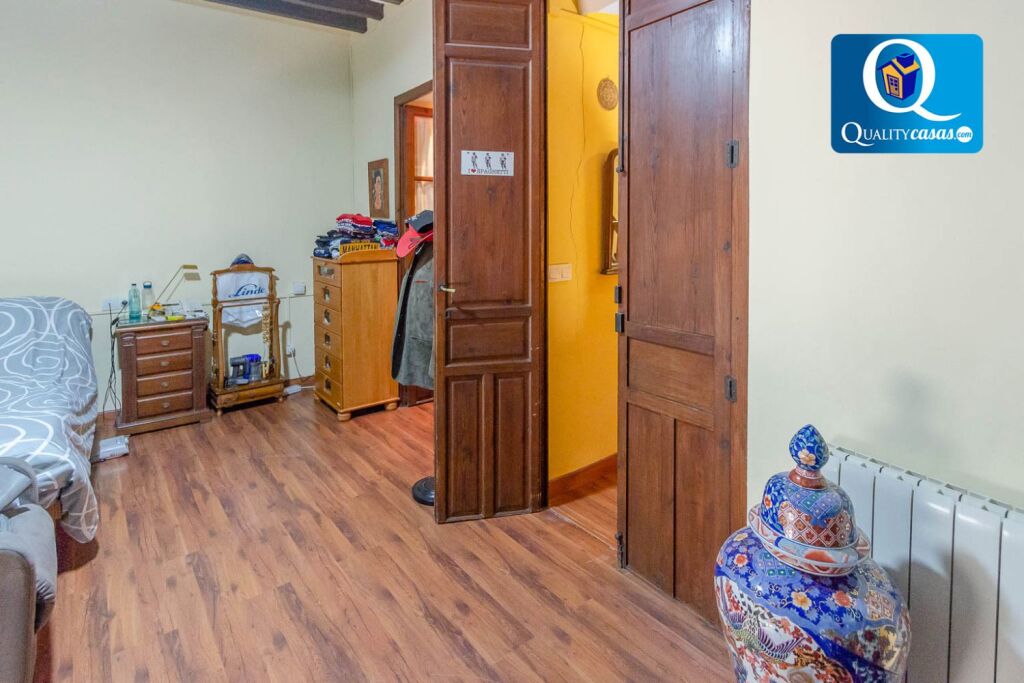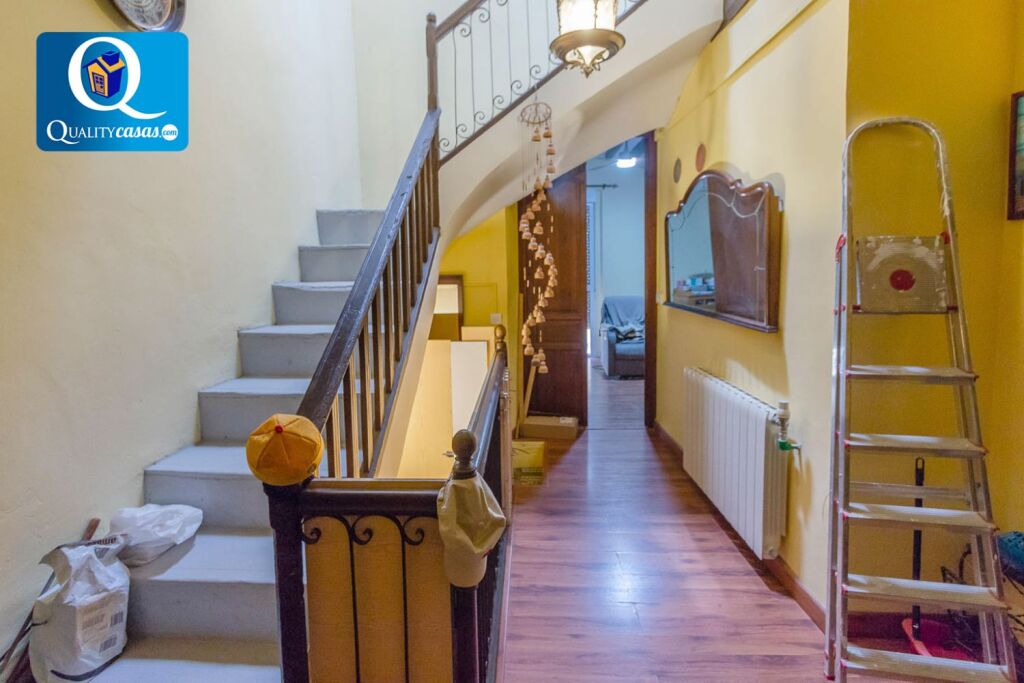 La primera vivienda, con tres plantas construidas de 100 m2 cada una y totalmente reformada, dispone de 2 dormitorios, 1 baño completo, amplio salón con dos ambientes, cocina independiente totalmente equipada y espacioso patio. Cuenta con ascensor interior y dispone de primeras calidades: suelos en gres porcelánico efecto madera y cerámica natural, puerta blindada, carpintería de roble macizo, techos de altura con vigas de madera originales, AA.CC por Split con bomba de calor y ventanas aluminio climalit, entre otras mejoras.