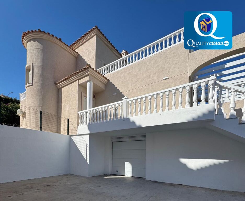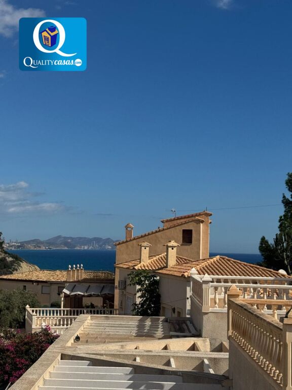 Un magnífico chalet en la mejor zona residencial de El Campello (Pueblo Acantilado - La Merced), a 200 metros de la playa y con excelentes vistas de mar y montaña.