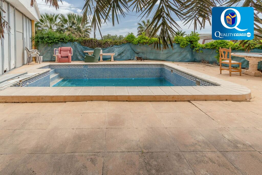 Con más de 340 m2 construidos, la vivienda dispone de gran porche terraza de 120 m2 comunicado con el amplio salón con dos orientaciones y cocina integrada. Cuenta con 3 dormitorios y 1 baño completo, así como patio interior, 3 zonas de trastero y jardín privado con piscina en la parte posterior. Cuenta con suelos de terrazo, rejas y carpintería de roble.