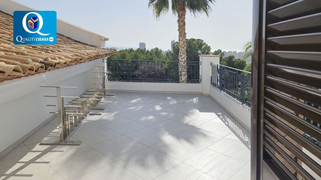 Este fabuloso chalet se encuentra en una de las mejores zonas residenciales de Finestrat (Alicante), muy bien localizado y con fantásticas vistas a zonas ajardinadas, la montaña y el mar, con la playa de levante de Benidorm en el horizonte. Dispone además de amplia parcela privada magníficamente acondicionada como jardín privado.