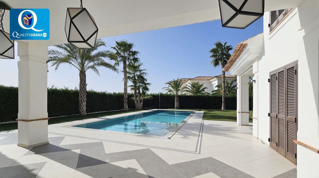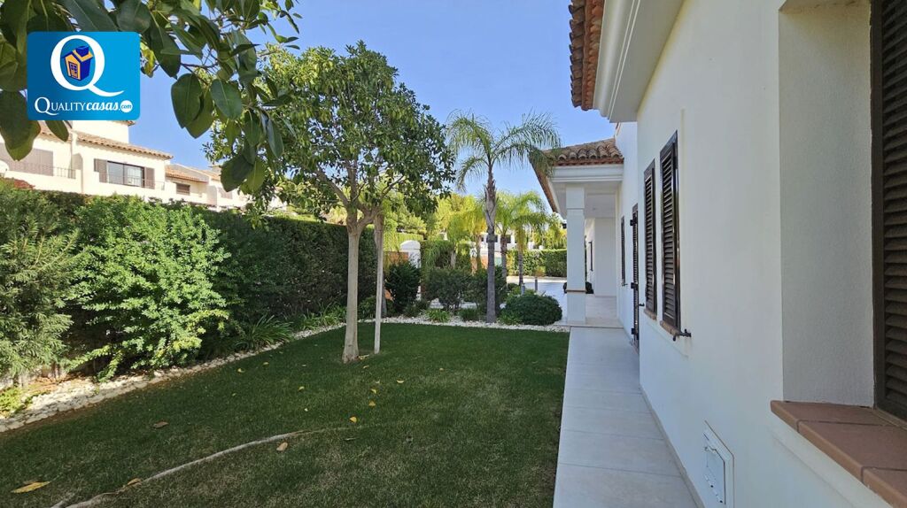 La exclusiva propiedad es totalmente exterior, muy amplia y luminosa, con excelente distribución en sus dos plantas, decorada y amueblada con exquisito gusto y con las más altas calidades. La parcela se encuentra magníficamente perimetrada, dispone de riego automático, y nos ofrece total privacidad para disfrutar de su fantástica piscina, sus zonas de césped natural y arbolado y su barbacoa con zona de comedor.