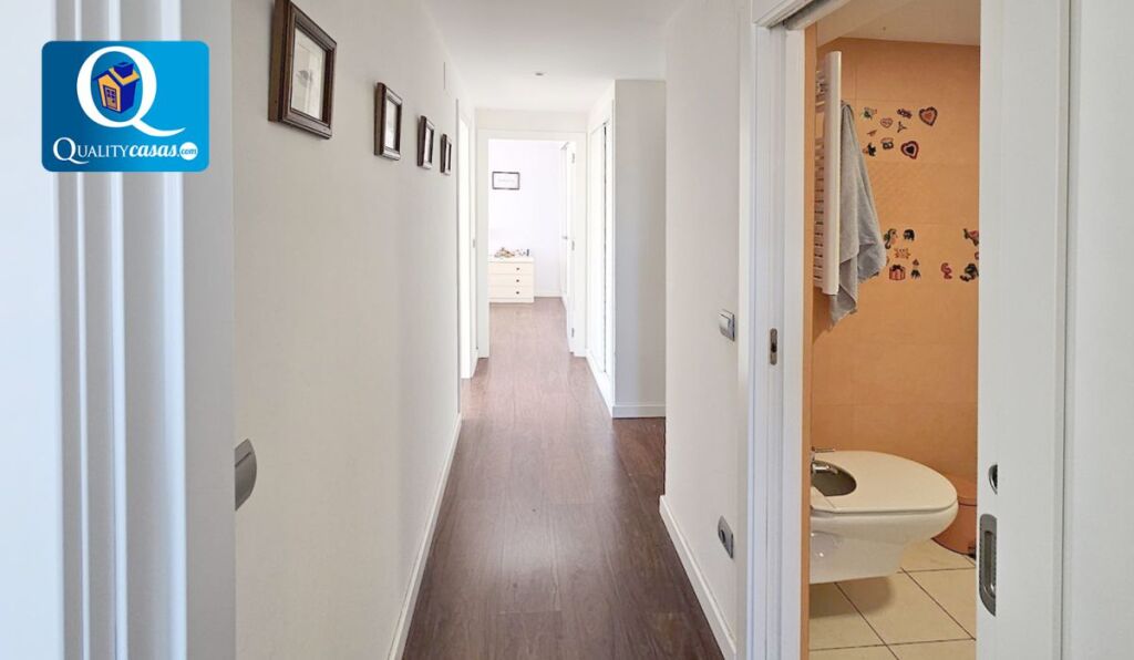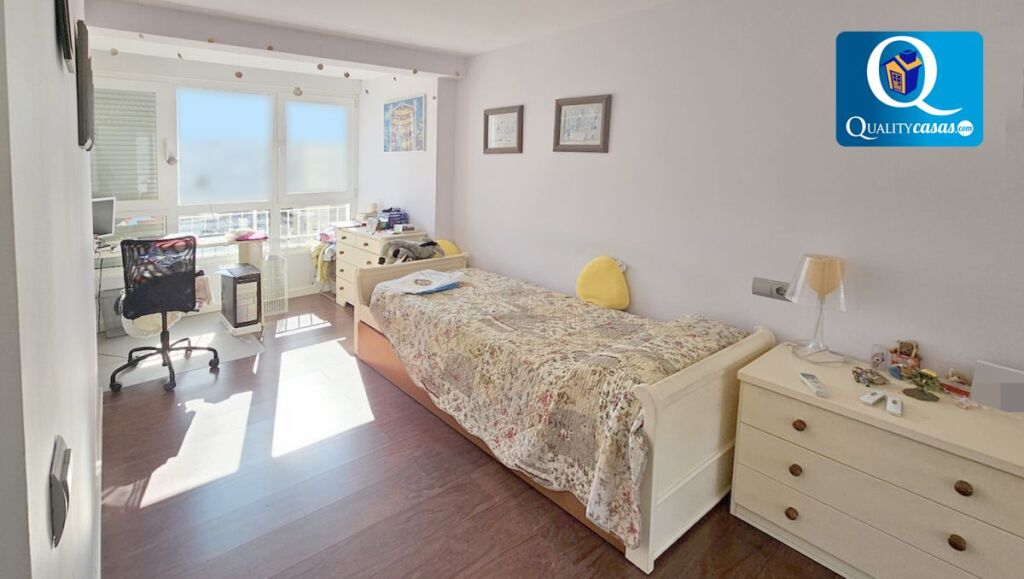 El espacioso hall de entrada nos recibe dando paso al amplio salón con dos orientaciones y dos ambientes, con amplios ventanales al mar. La moderna y espaciosa cocina, con vistas exteriores y zona de office, se encuentra totalmente equipada, cuenta con todos los electrodomésticos y dispone de galería acristalada. La vivienda dispone de 4 habitaciones con armarios empotrados y 3 baños completos, disponiendo el dormitorio principal de baño en suite.