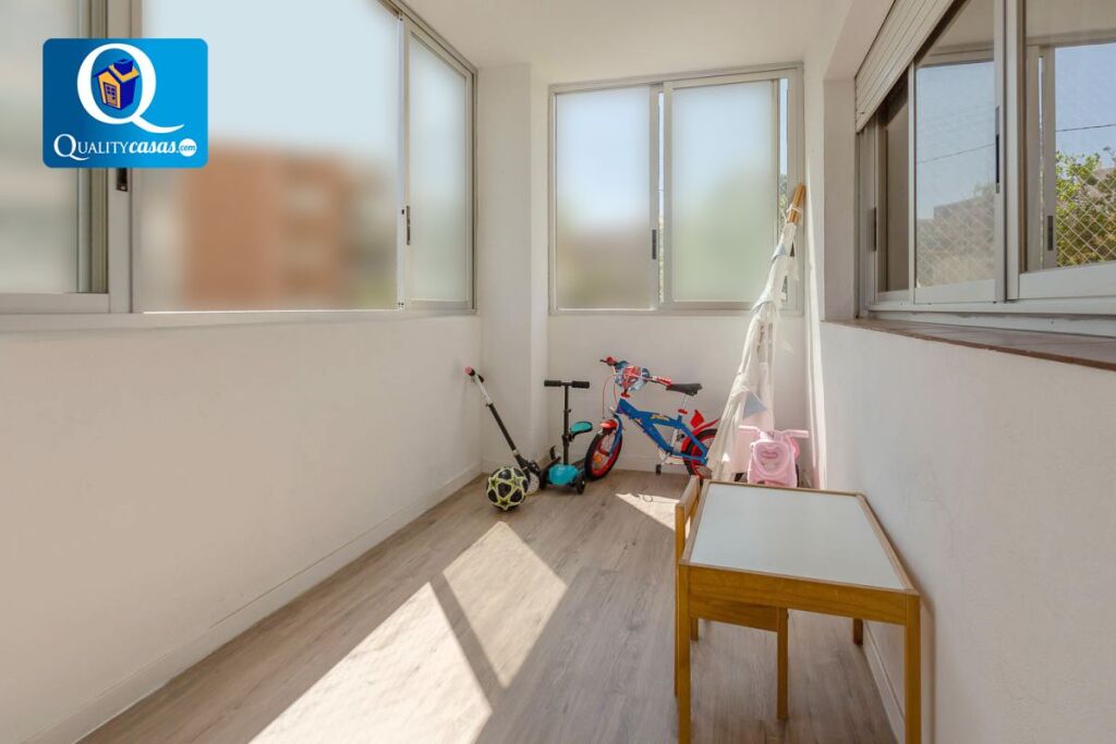 La vivienda es totalmente exterior, luminosa y amplia, y se encuentra en una completa urbanización. La cuidada construcción, sólida y de calidad, así como su ubicación, distribución y perfecto estado, la convierten en una propiedad cómoda, acogedora y exclusiva con muchas posibilidades. Dispone de moderna cocina office integrada en el salón de la vivienda, completamente equipada, con todos los electrodomésticos y con galería acristalada. Consta de 3 dormitorios (2 de ellos con armarios empotrados) y 2 baños completos. El espacioso y luminoso salón exterior , muy bien comunicado y con 2 ambientes, dispone de amplios ventanales y terraza acristalada con vistas a la urbanización.