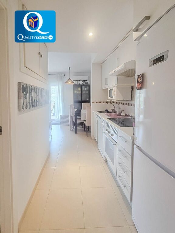 El luminoso salón, muy bien comunicado, dispone de dos orientaciones y cuenta con magnífica terraza con vistas despejadas y de montaña. La cocina office se encuentra totalmente equipada, cuenta con todos los electrodomésticos y se integra en el salón, compartiendo su luminosidad. La vivienda cuenta con 2 dormitorios y 1 baño completo.