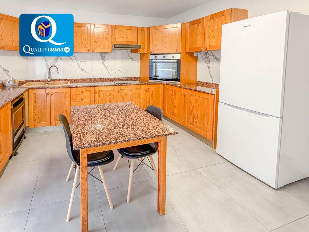 El amplio y luminoso salón, muy bien comunicado, dispone de terraza exterior con excelentes vistas despejadas al municipio y la montaña. La espaciosa y luminosa cocina independiente, con zona de office, se encuentra totalmente equipada, cuenta con todos los electrodomésticos y dispone también de galería acristalada. La vivienda cuenta con 4 habitaciones (3 de ellas con armarios empotrados) y 2 baños completos, disfrutando uno de los dormitorios de baño en suite.