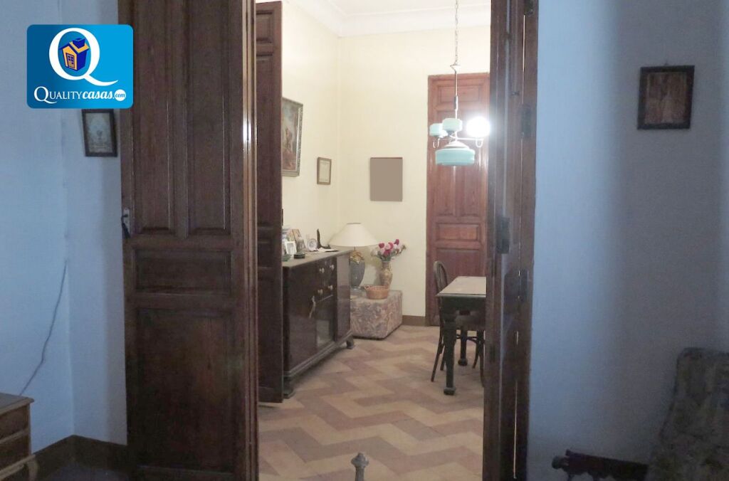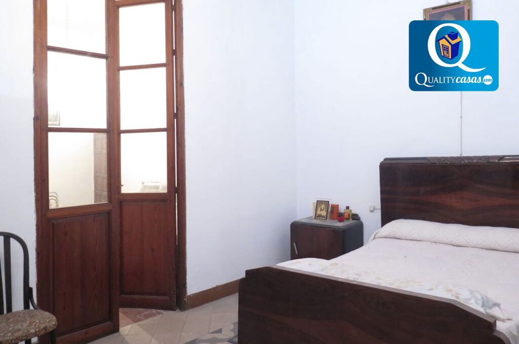 Se trata de una magnífica vivienda tradicional, muy amplia y luminosa. Dispone de 463 m2 construidos, distribuidos en 2 plantas, más un patio interior, terraza y solar de 84 m2. Actualmente la propiedad cuenta con 7 dormitorios, 1 baño, 2 cocinas independientes, salón comedor, 2 amplias zonas de hall distribuidor (una en cada planta), zona de trastero y escalera central. Dispone de suelos rústicos en piedra en zona de planta baja, 2 chimeneas, armarios empotrados, suelos de pavimento hidráulico en habitaciones y techos de gran altura con vigas de madera originales. Cuenta con acometidas de agua y luz.