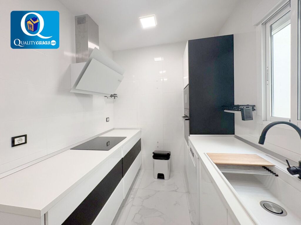 Se trata de una propiedad exterior, acogedora y luminosa, con una excelente distribución y grandes posibilidades. Con una construcción sólida y de calidad, la vivienda se ofrece semiamueblada y se encuentra en impecable estado tras magnífica reforma integral (a estrenar) con primeras calidades. Dispone de suelos en gres porcelánico, paredes en pintura lisa, techos en cámara de pladur con iluminación integrada, AA.CC con 3 splits, calefacción por suelo radiante, carpintería lacada en blanco y ventanas aluminio climalit, entre otras mejoras.