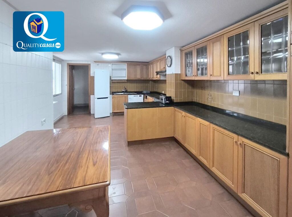 El amplio y luminoso salón, muy bien comunicado, cuenta con dos ambientes y dispone de terraza con vistas despejadas. La moderna y espaciosa cocina, con amplia zona de office, se encuentra totalmente equipada y dispone también de espaciosa galería acristalada. La vivienda cuenta con 5 dormitorios con armarios empotrados y 2 baños completos.