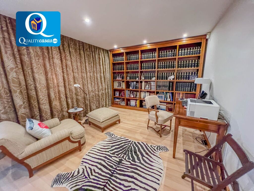La vivienda dispone de 7 dormitorios con armarios empotrados (10 en toda la vivienda), 5 baños completos (4 en suite) y 1 aseo de cortesía. La planta semisótano se encuentra totalmente acondicionada, con zona de bodega y bar, gimnasio y sauna. La propiedad incluye además dependencias para invitados, 2 zonas de trastero y zona de parking en la entrada de la parcela.