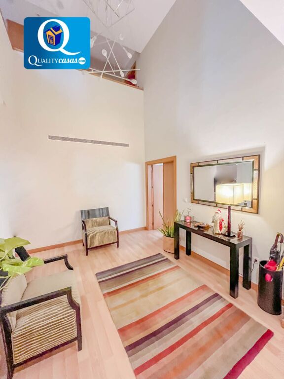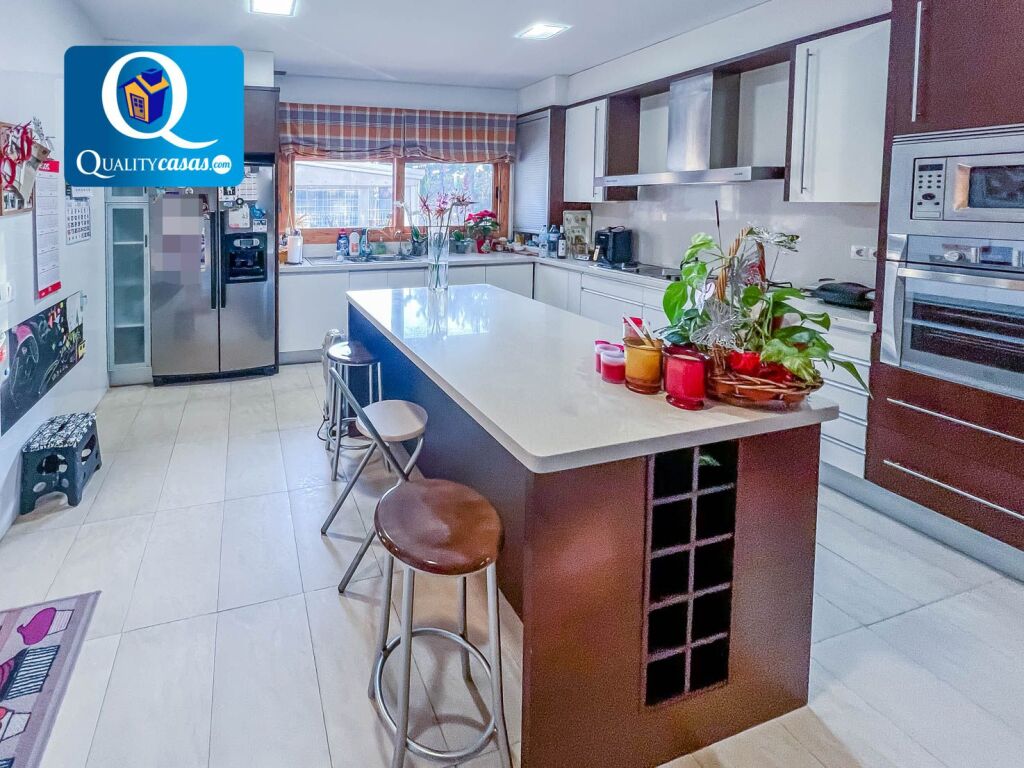 El amplio porche terraza da paso al luminoso hall con triple altura y luz cenital. El espacioso salón principal, con dos orientaciones y dos ambientes, dispone de zona de comedor y zona de estar, desde donde podemos contemplar el jardín o reunirnos junto a la chimenea. La moderna cocina, con vistas exteriores y zona de office, se encuentra totalmente equipada, cuenta con todos los electrodomésticos y dispone de cuarto galería de lavado y plancha.
