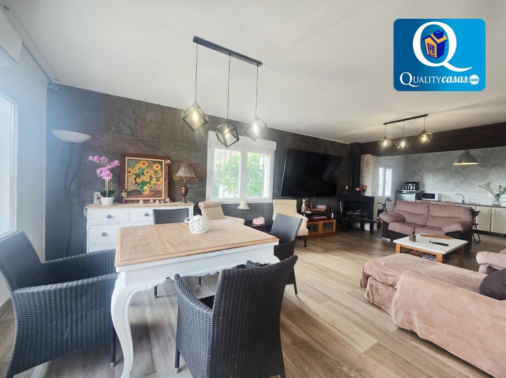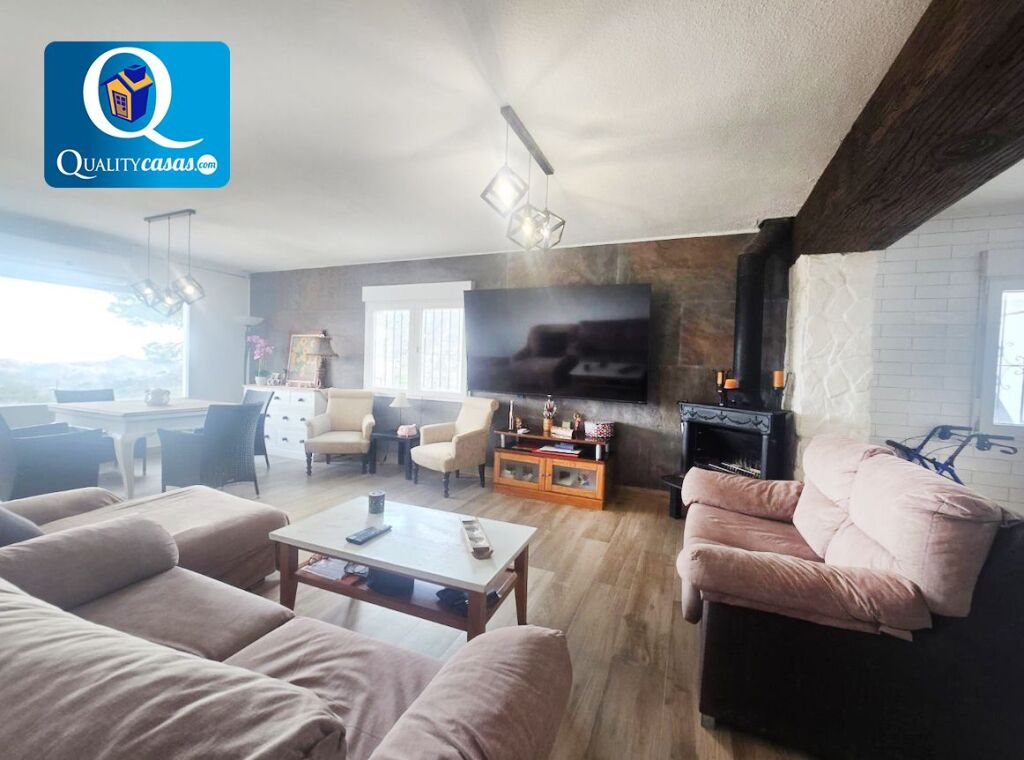 Un excelente chalet en tranquila y bien comunicada zona de Agost (Rochet), muy bien localizado y con vistas panorámicas al mar y a la montaña. Dispone de amplia parcela de 4.200 m2 con grandes posibilidades, acondicionada en parte como jardín privado, con parking cubierto para varios vehículos, piscina y zona de barbacoa.