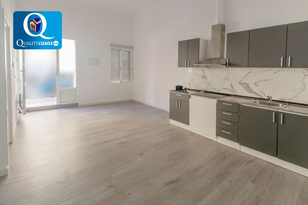 El espacioso y luminoso salón, con vistas al paseo, dispone de moderna cocina integrada, amueblada y equipada. La vivienda cuenta con un amplio dormitorio y 1 baño completo.