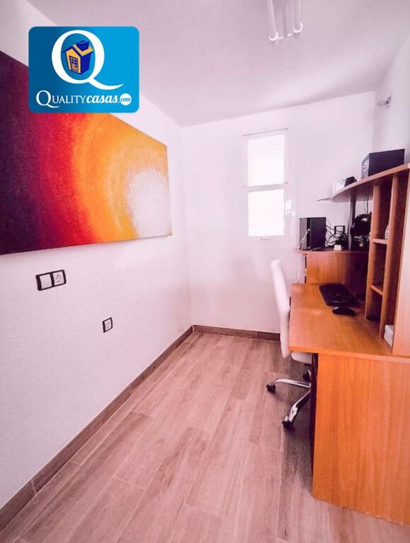 Con una construcción sólida y moderna, la vivienda se ofrece semiamueblada, se encuentra en inmejorable estado y dispone de primeras calidades, contando con suelos en gres porcelánico efecto madera, techos en cámara de pladur, preinstalación de AA.CC centralizado y AA.CC por Split con bomba de calor, ventiladores de techo, puerta blindada, rejas, mosquiteras, toldos integrales motorizados, carpintería de roble y ventanas aluminio climalit, entre otras mejoras.